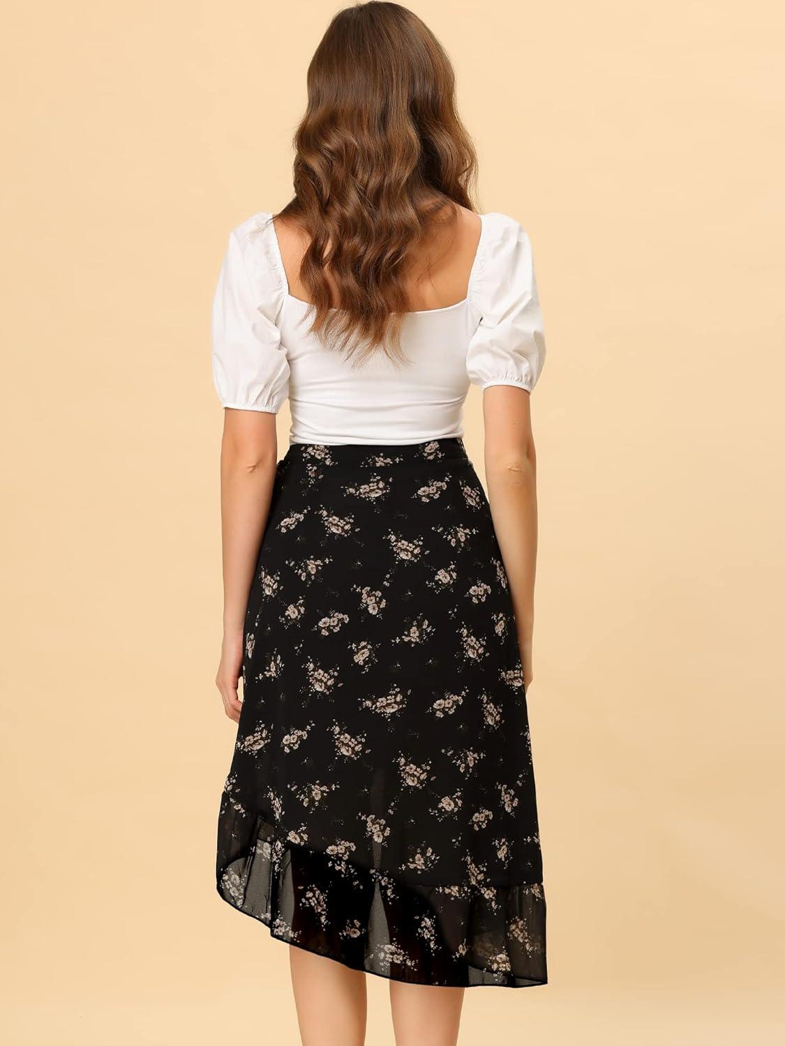 Allegra K Women's Flowy Summer Chiffon Skirt Ruffle Hem High Low Floral Wrap Skirts