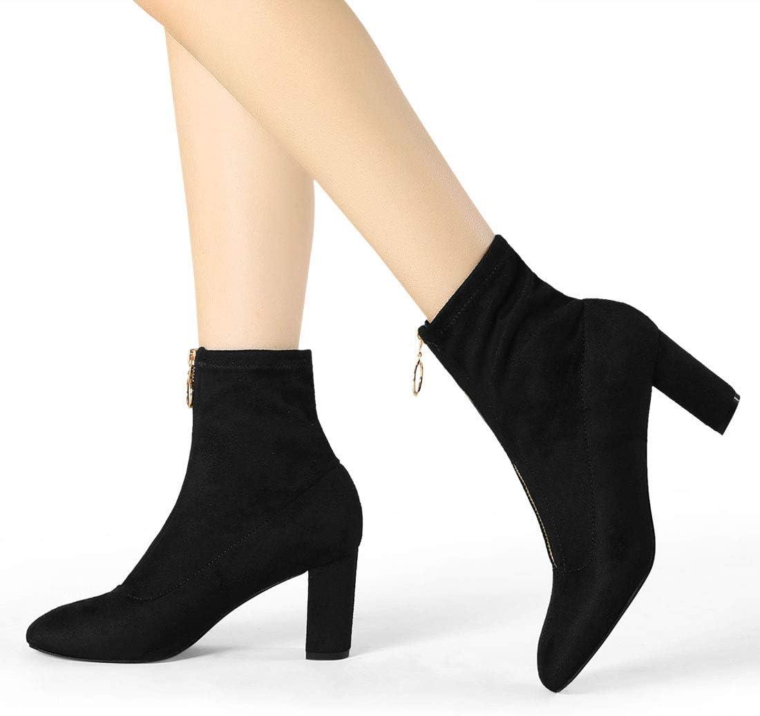 Allegra K Women's Front Zipper Chunky High Heel Ankle Boots(Black)