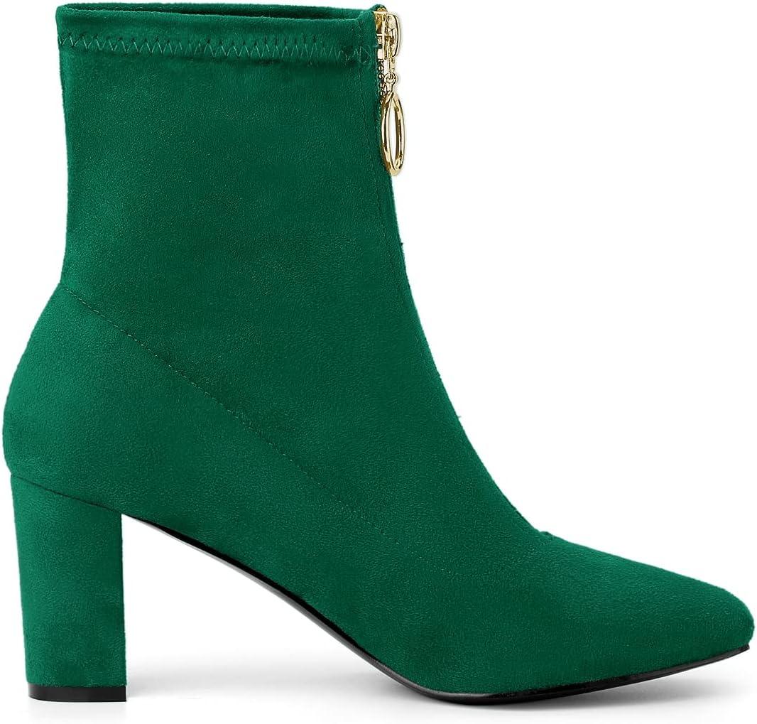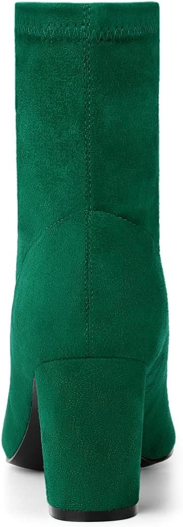 Allegra K Women's Front Zipper Chunky High Heel Ankle Boots(Emerald Green)