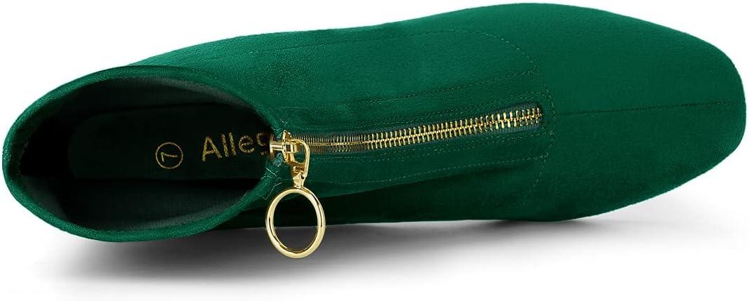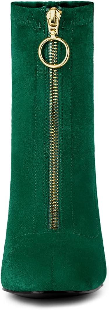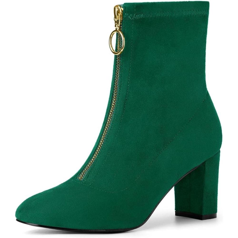 Allegra K Women’s Front Zipper Chunky High Heel Ankle Boots(Emerald Green)