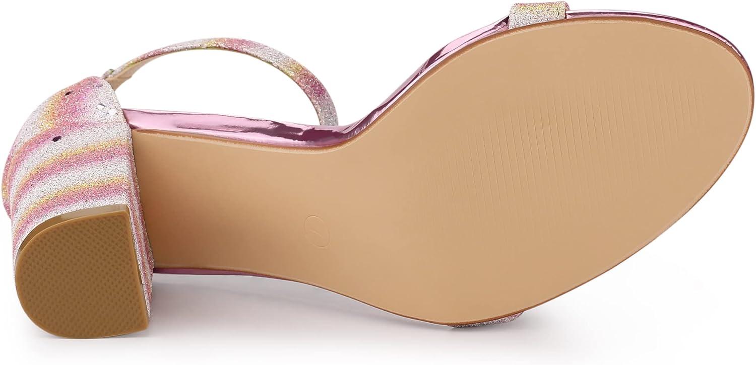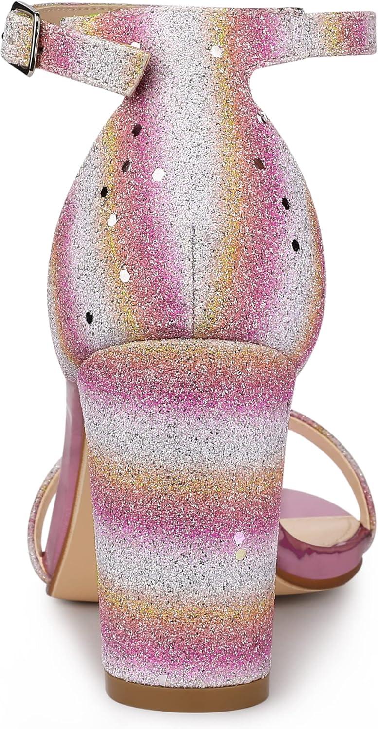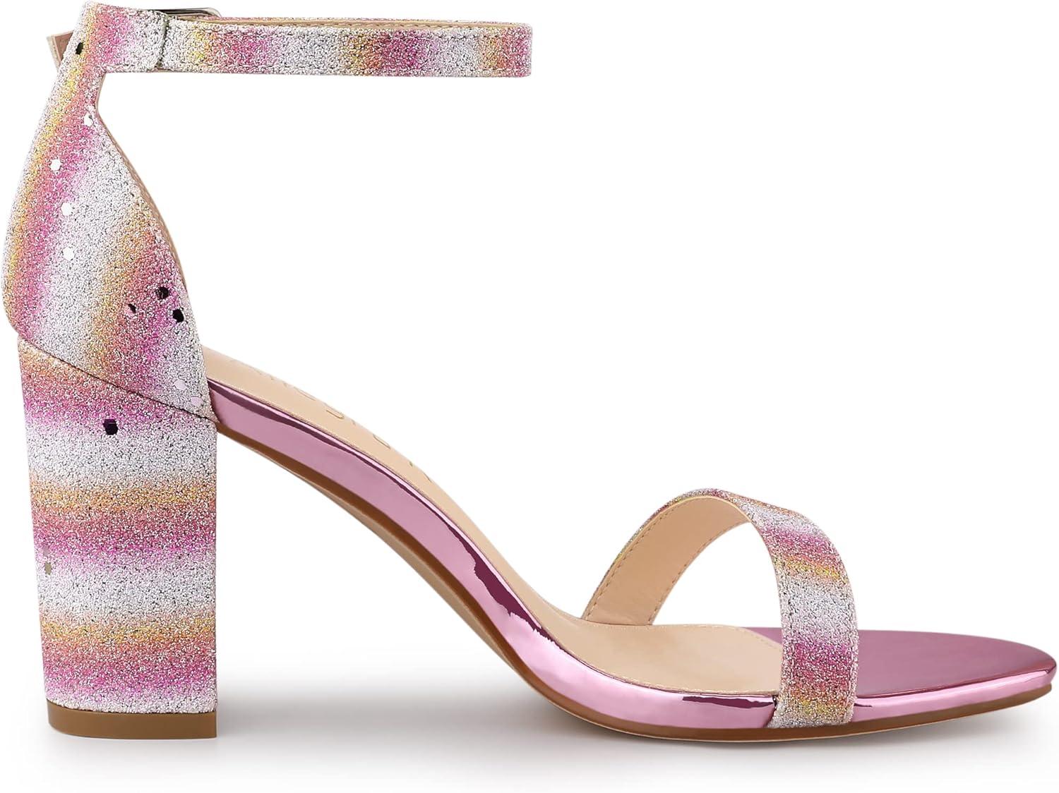 Allegra K Women’s Glitter Ankle Strap Chunky Heels Sandals(Colorful)