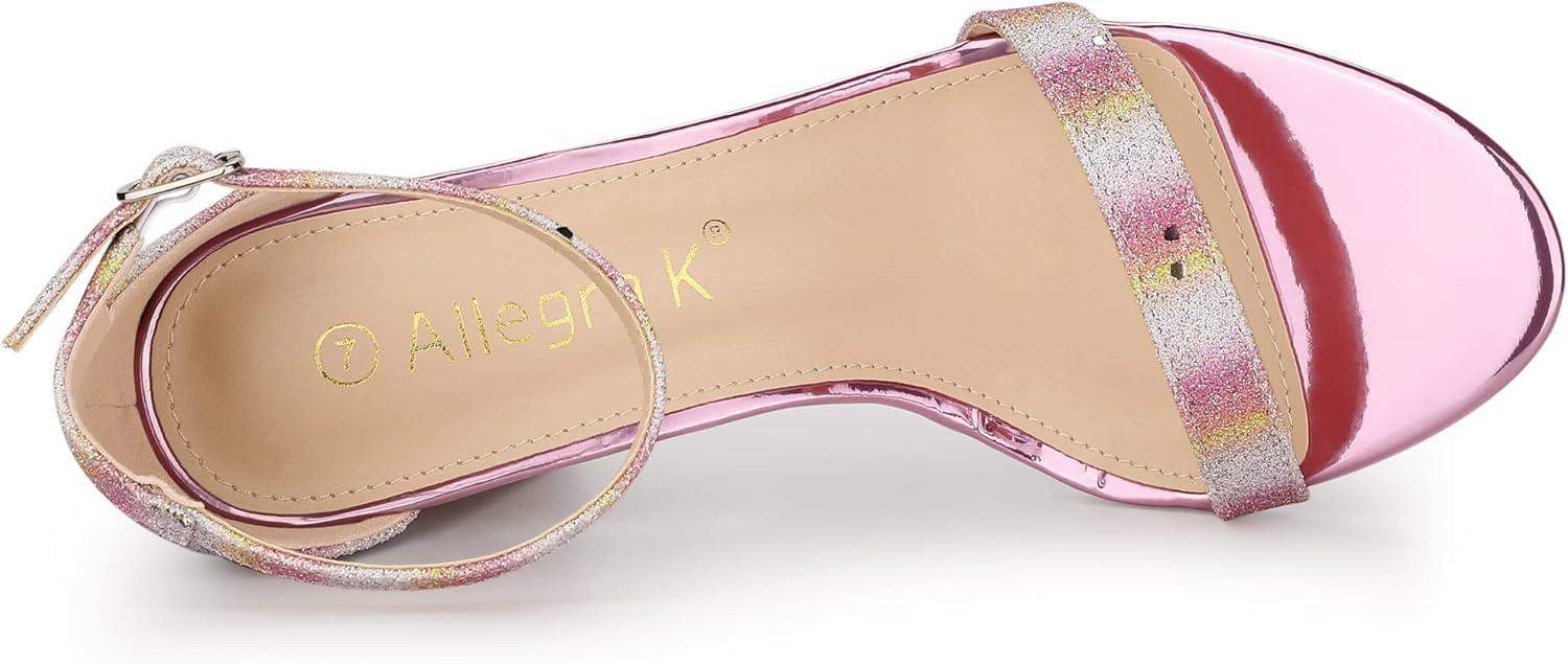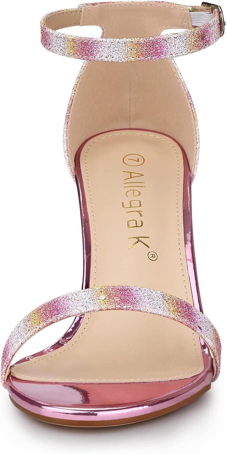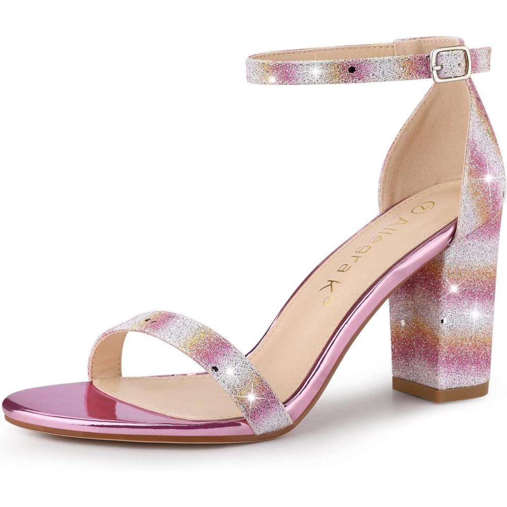 Allegra K Women’s Glitter Ankle Strap Chunky Heels Sandals(Colorful)