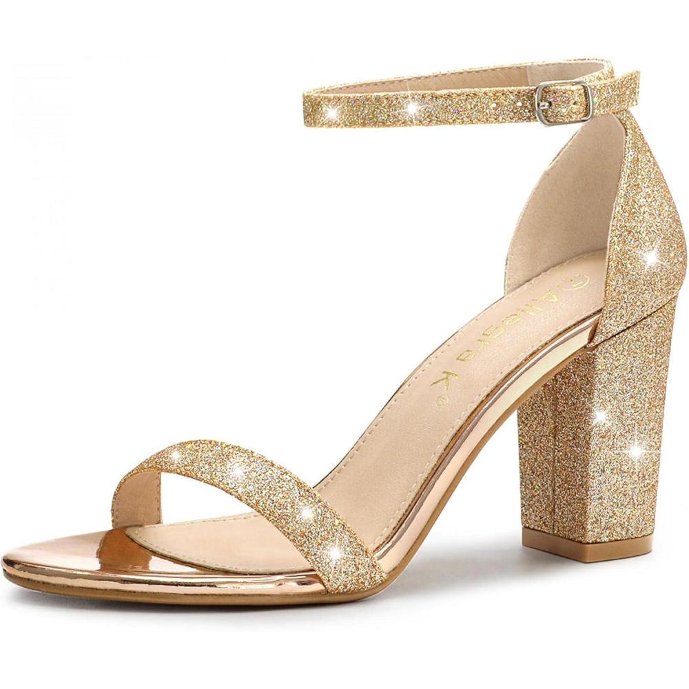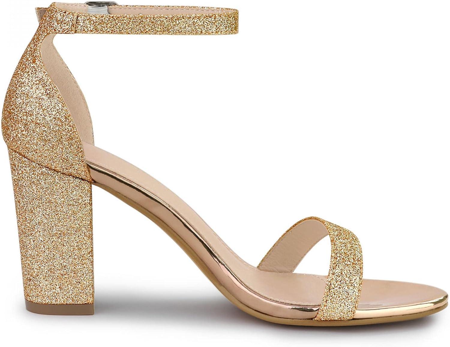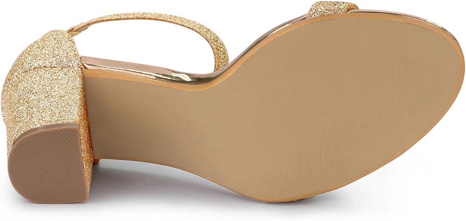 Allegra K Women’s Glitter Ankle Strap Chunky Heels Sandals(Gold)