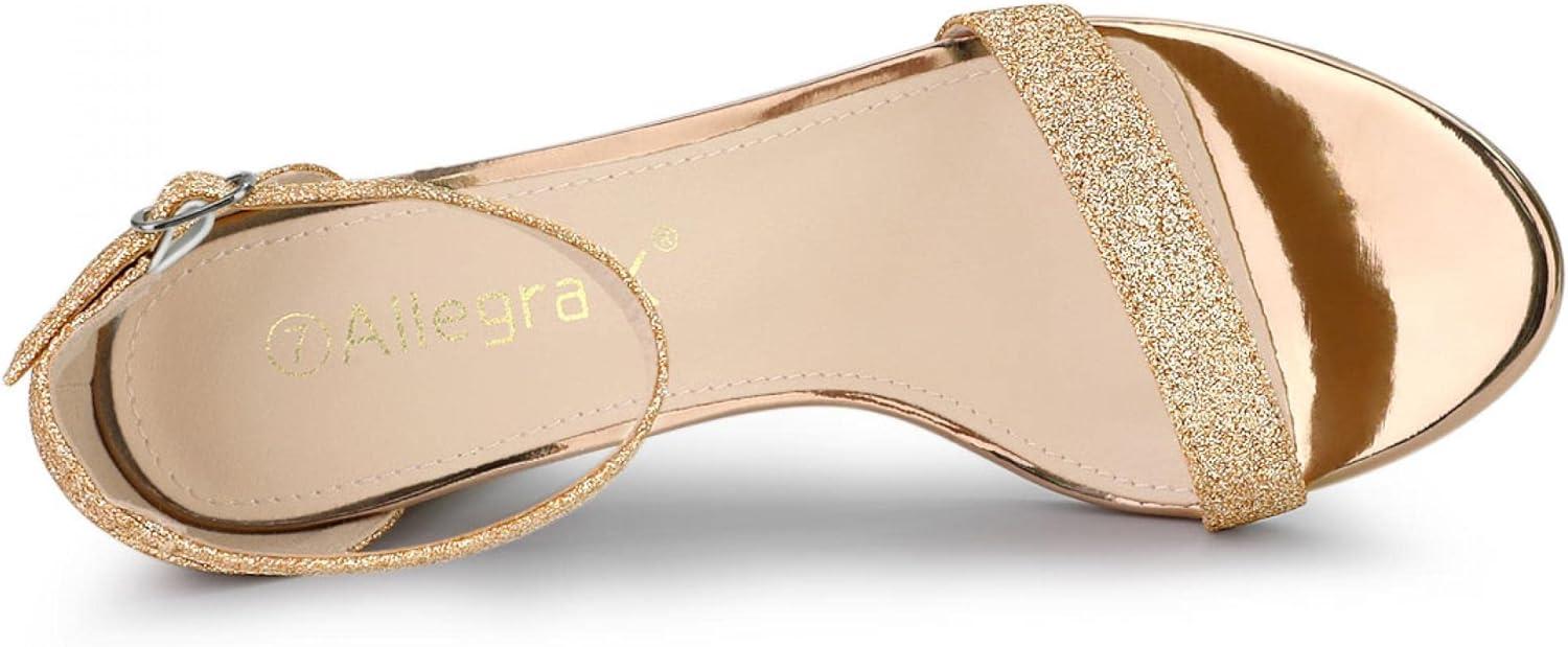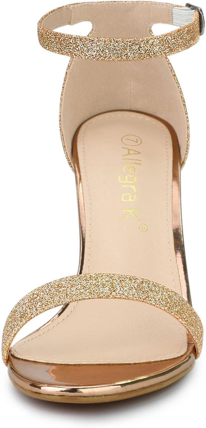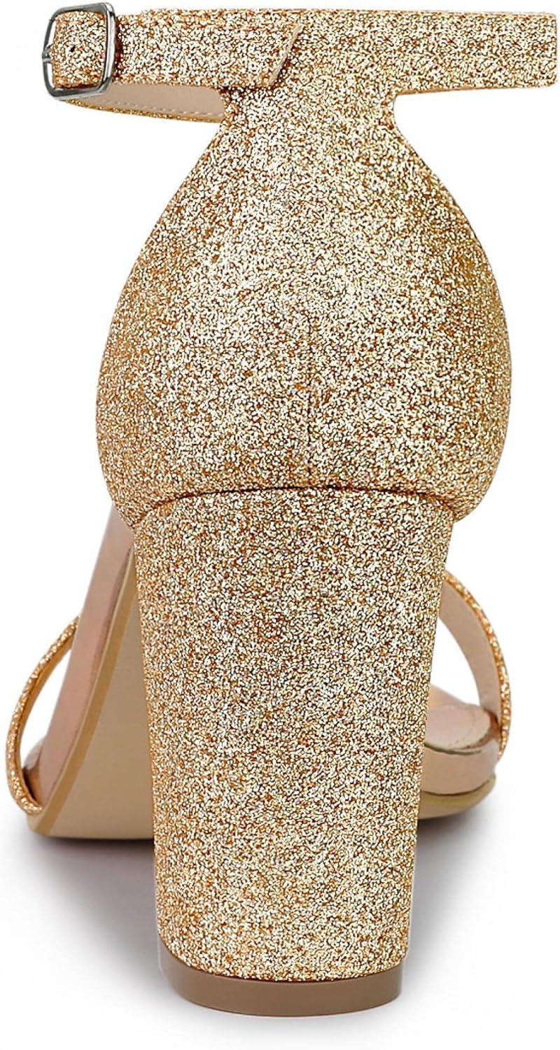 Allegra K Women’s Glitter Ankle Strap Chunky Heels Sandals(Gold)