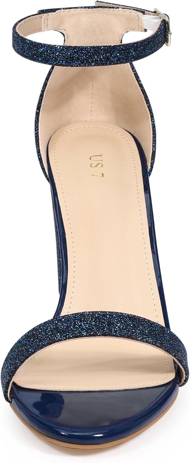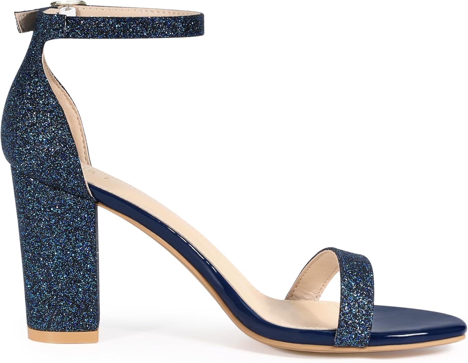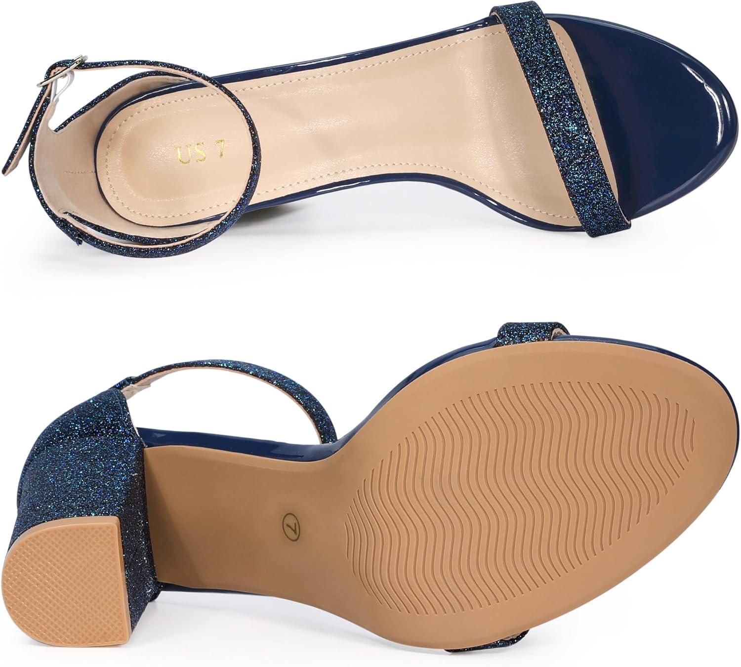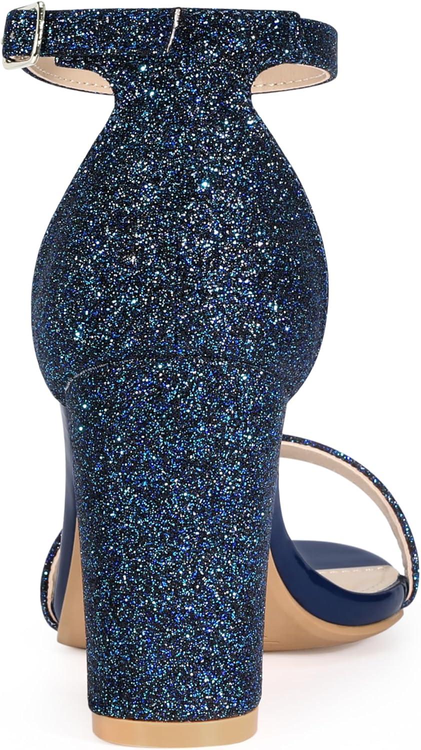 Allegra K Women’s Glitter Ankle Strap Chunky Heels Sandals(Navy Blue)