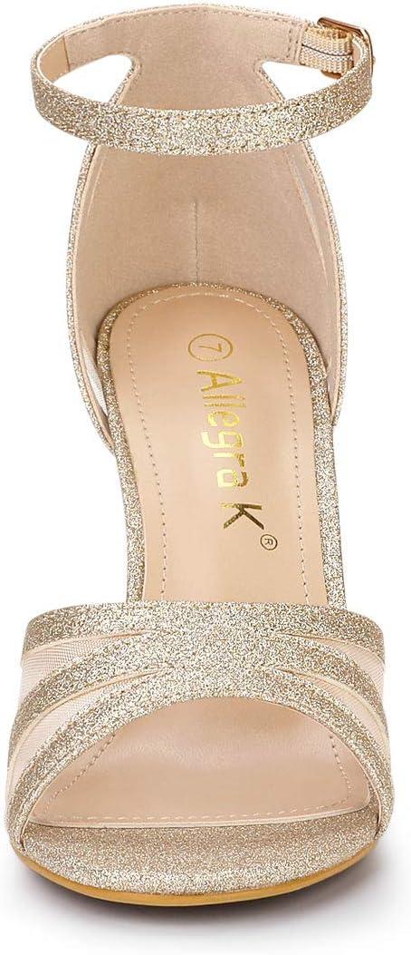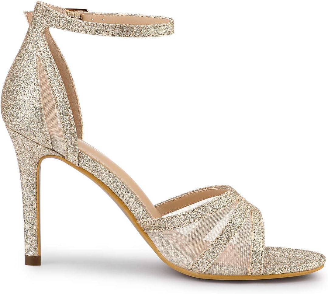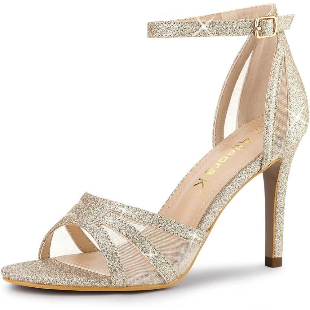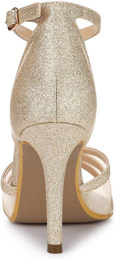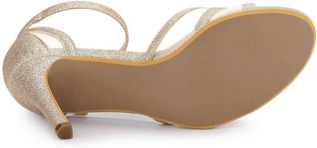Allegra K Women’s Glitter Ankle Strap Stiletto Heels Sandals(Gold)