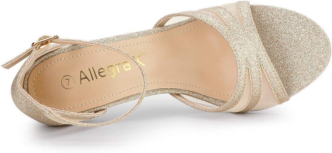 Allegra K Women's Glitter Ankle Strap Stiletto Heels Sandals(Gold)