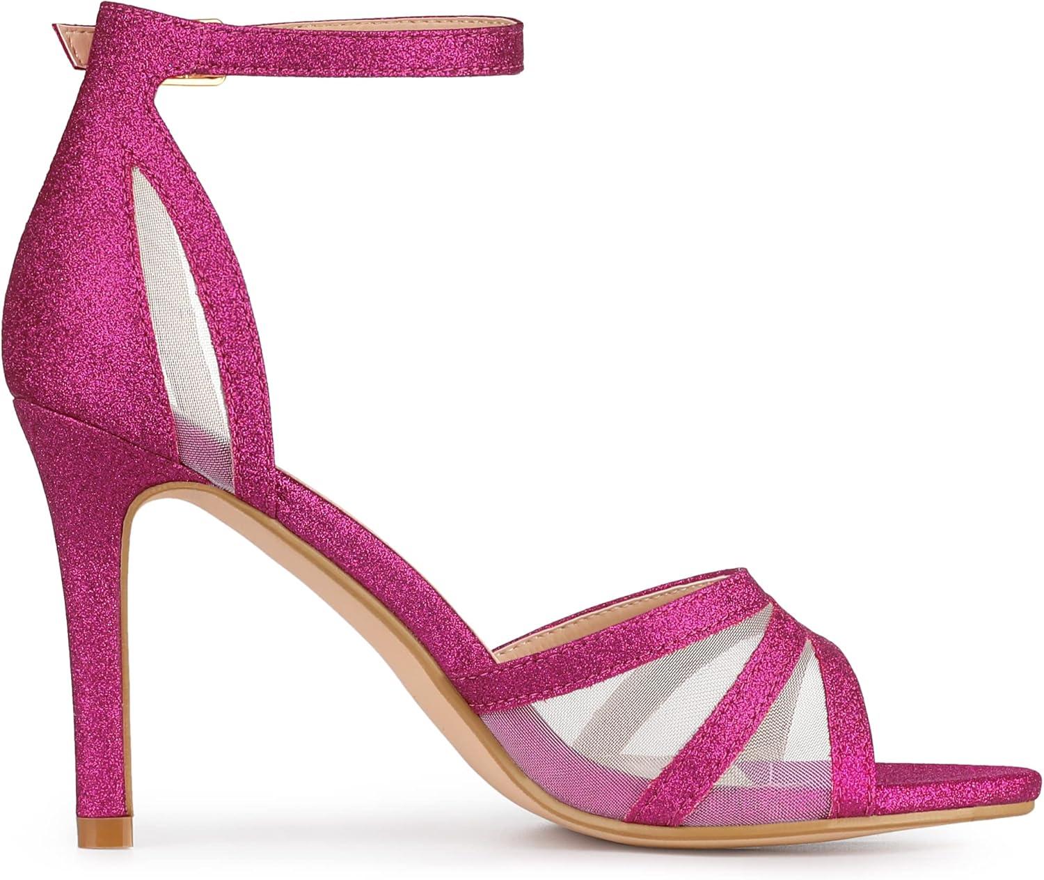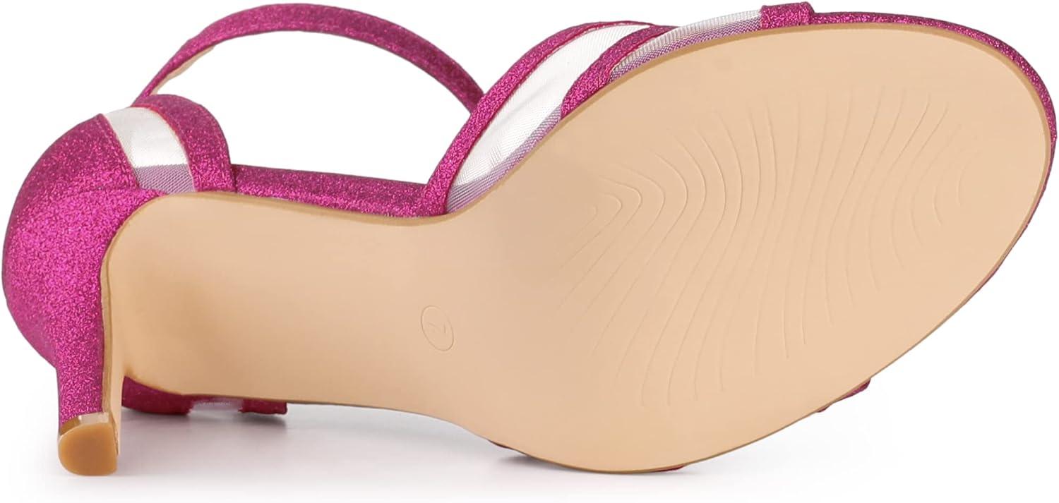 Allegra K Women’s Glitter Ankle Strap Stiletto Heels Sandals(Hot Pink)