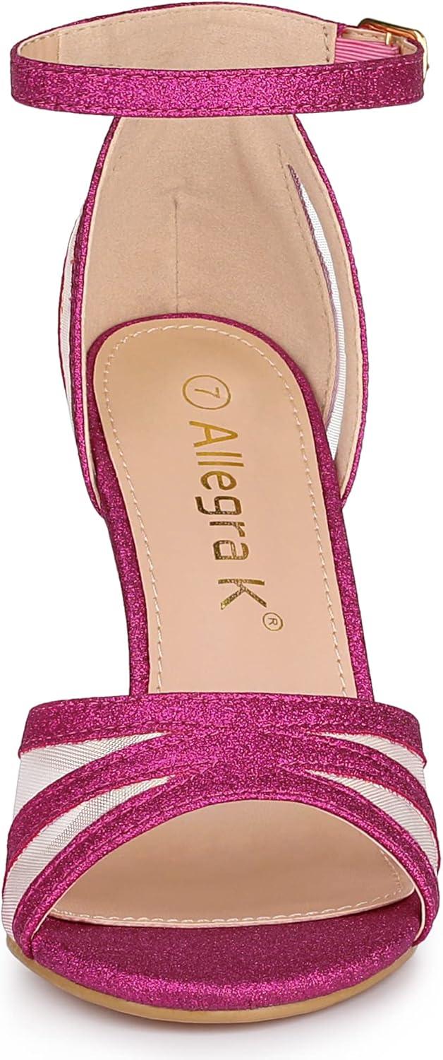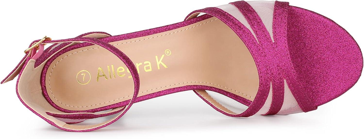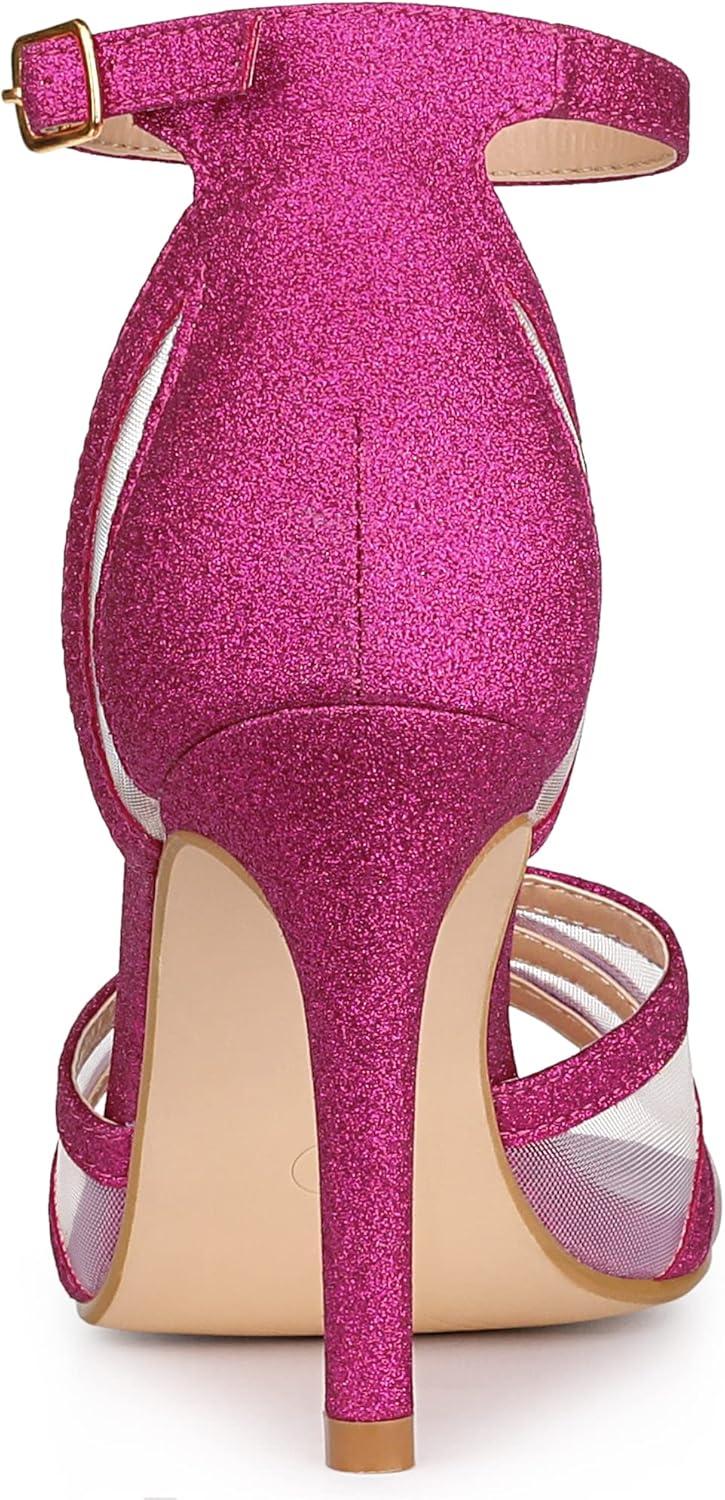 Allegra K Women's Glitter Ankle Strap Stiletto Heels Sandals(Hot Pink)