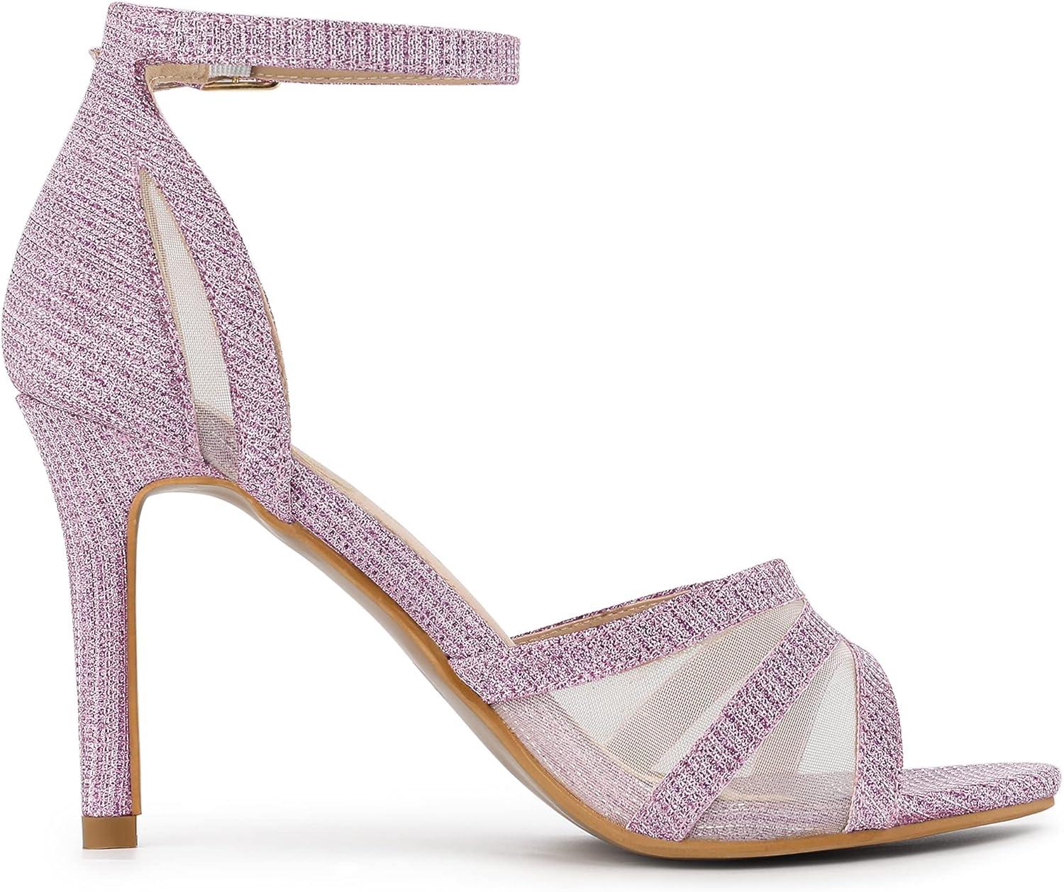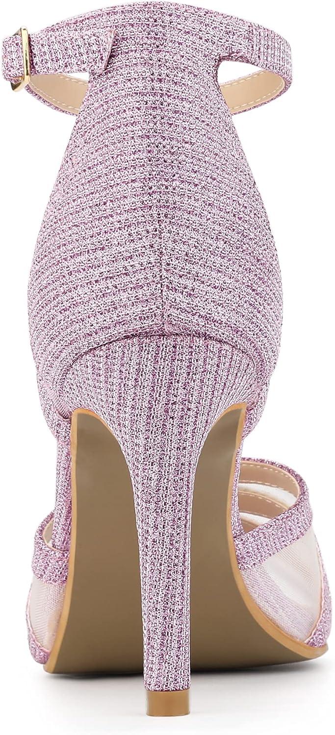Allegra K Women’s Glitter Ankle Strap Stiletto Heels Sandals(Purple)