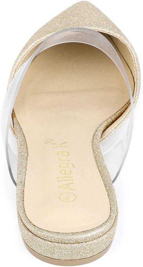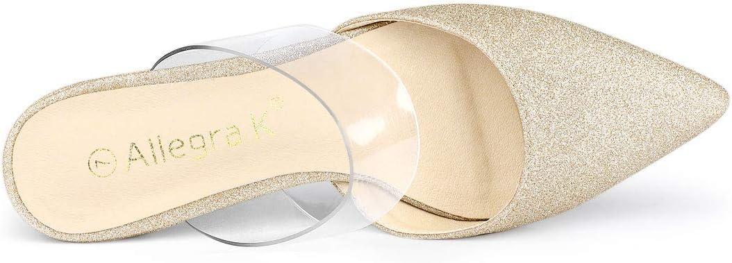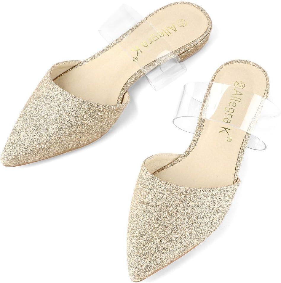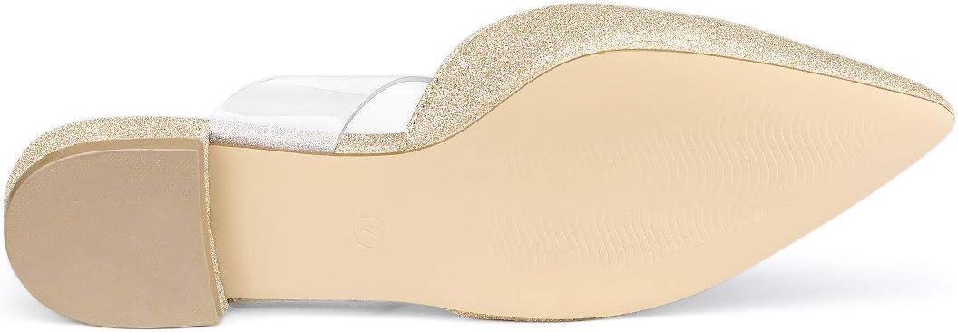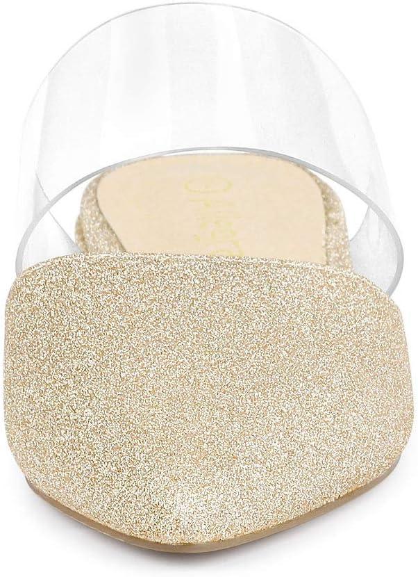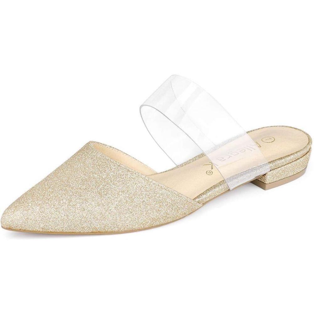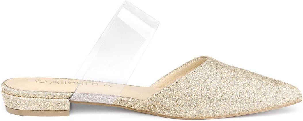 Allegra K Women’s Glitter Clear Strap Flat Mules(Gold)