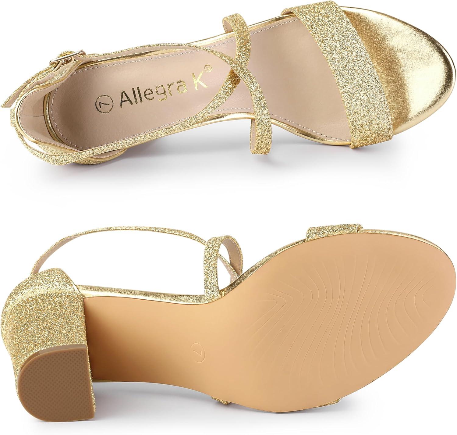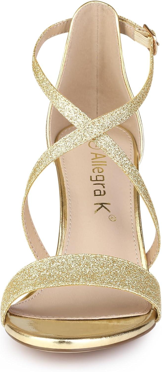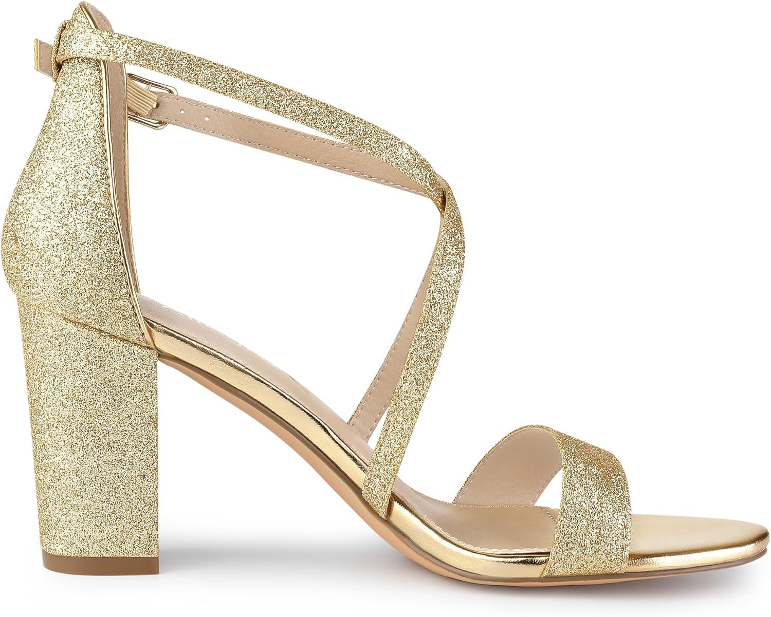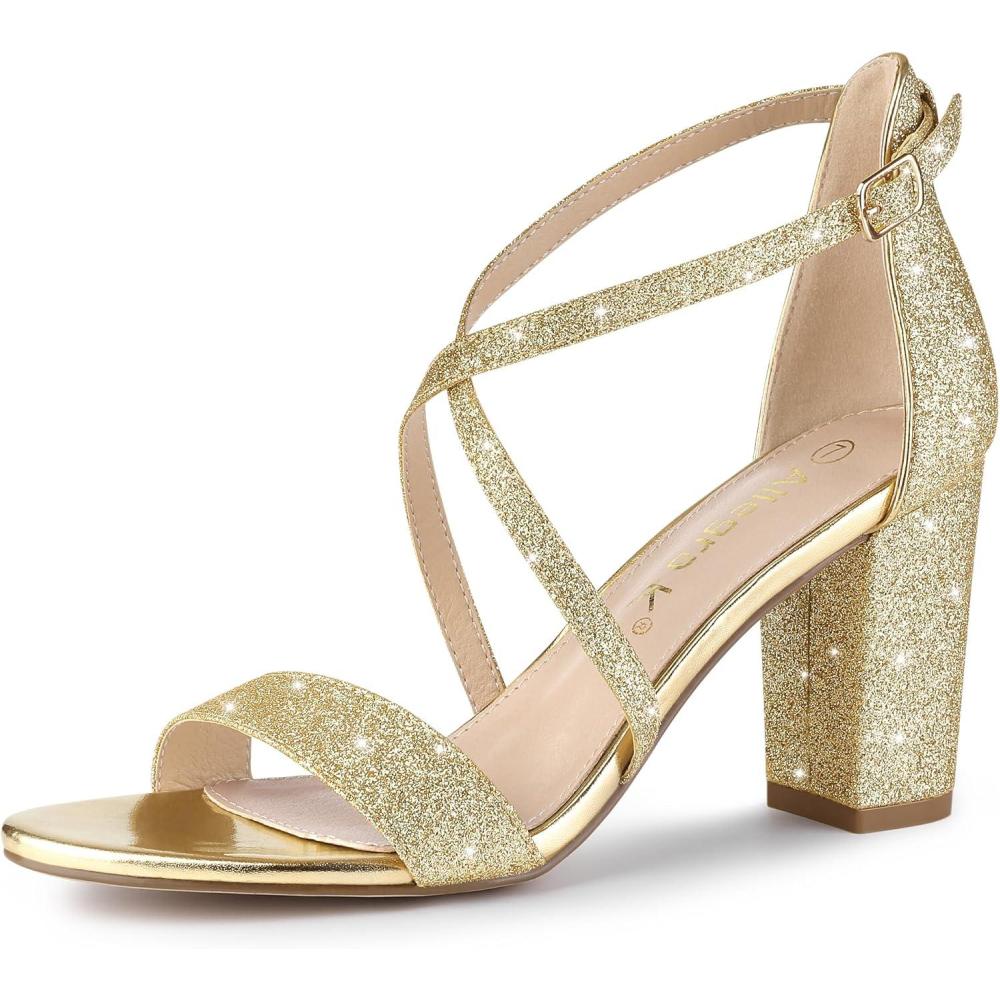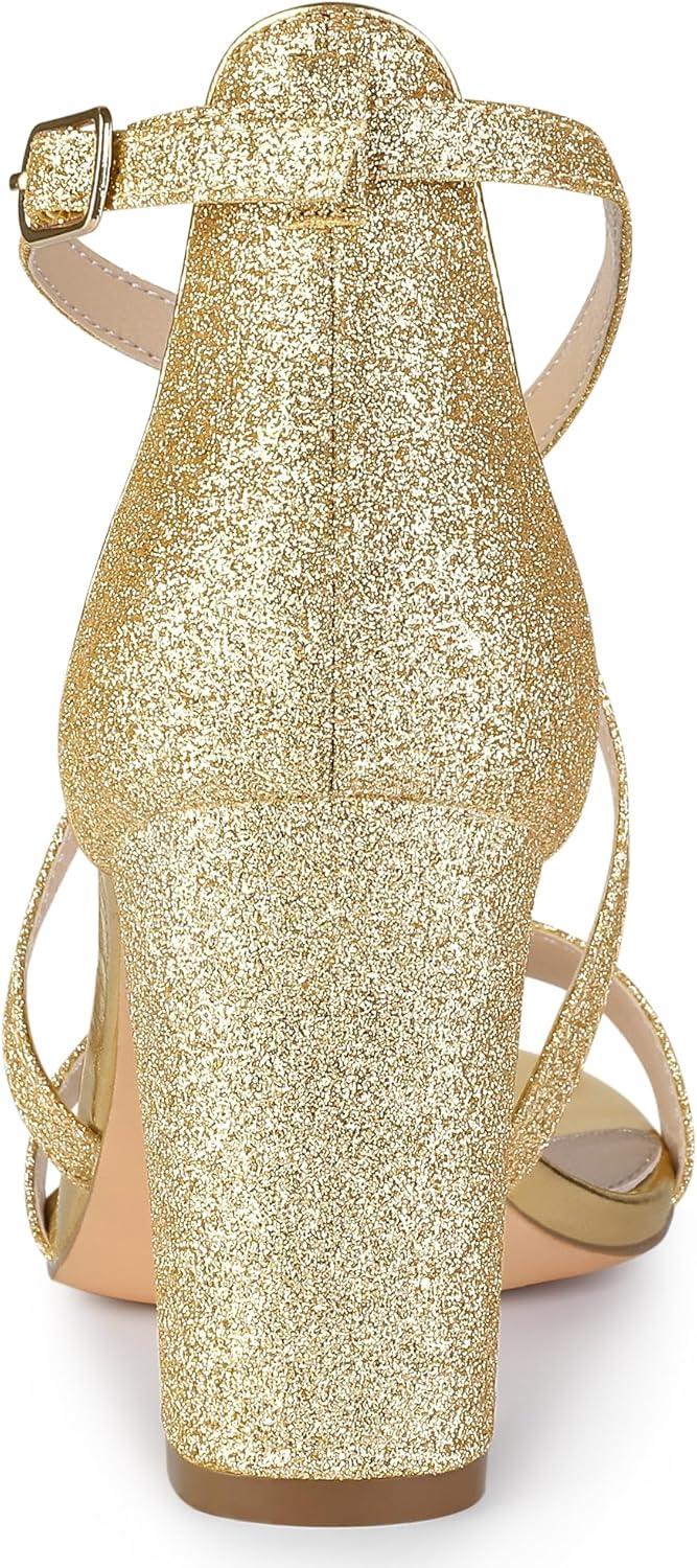 Allegra K Women’s Glitter Crisscross Strap Block Heels Sandals(Gold)