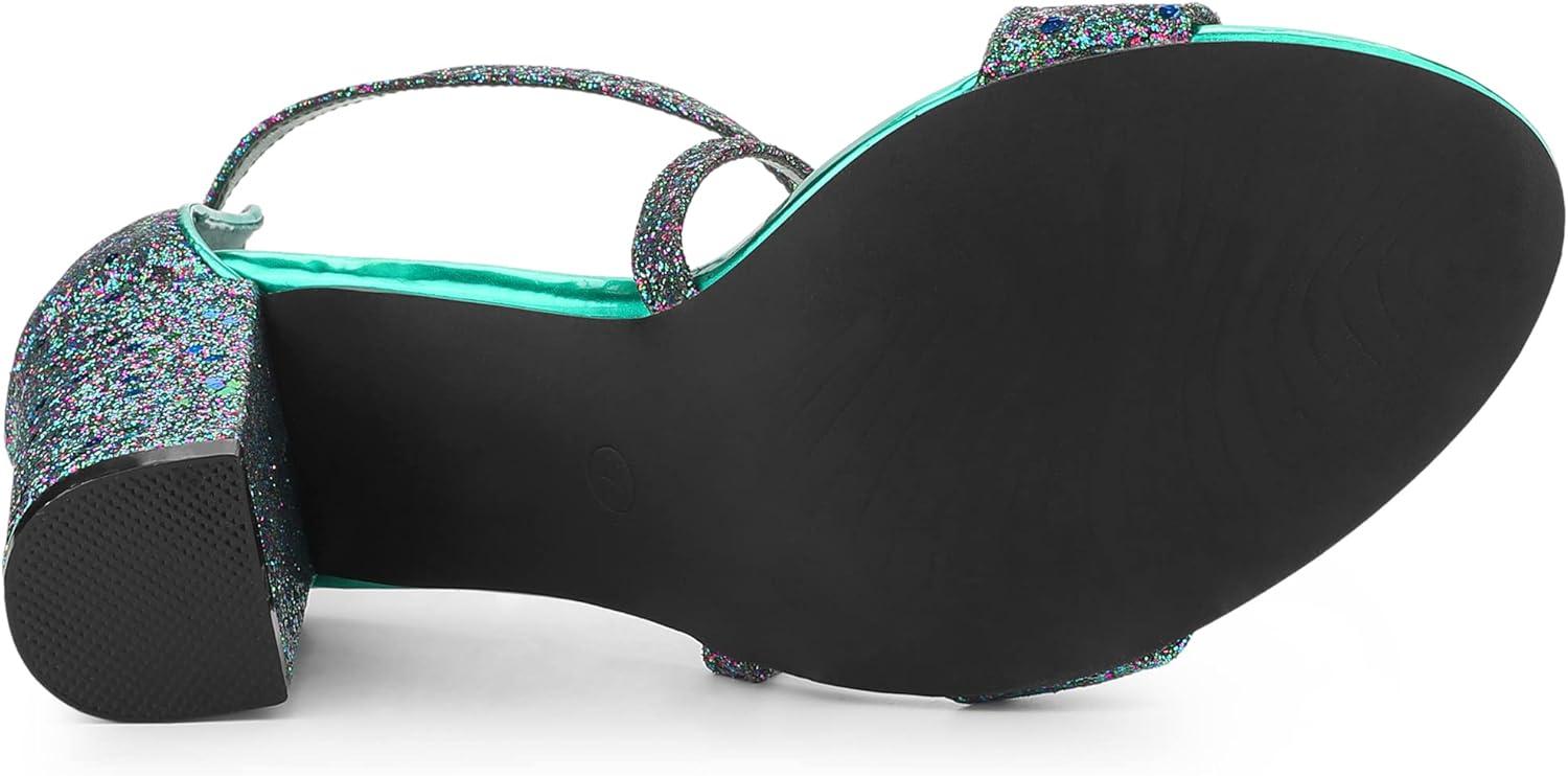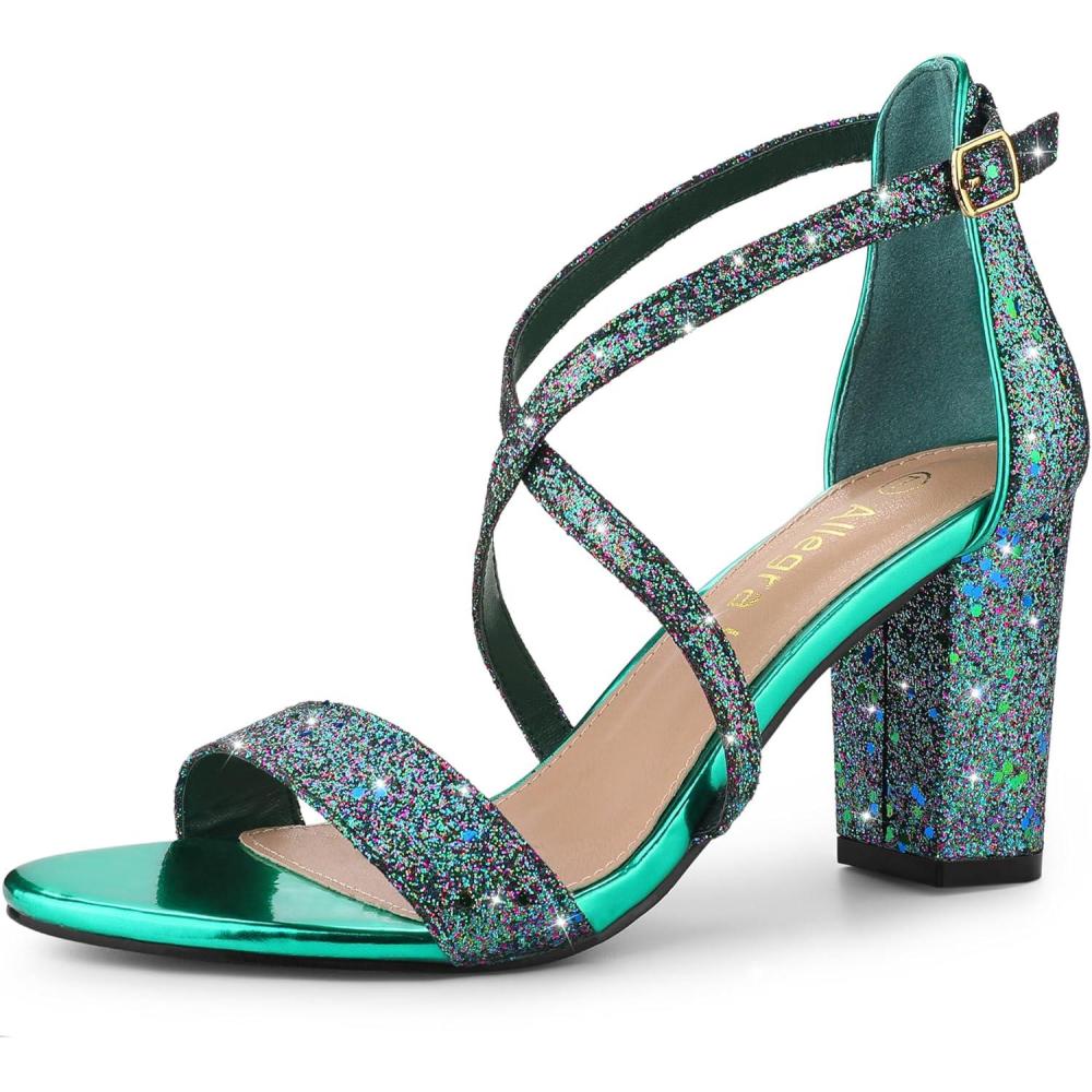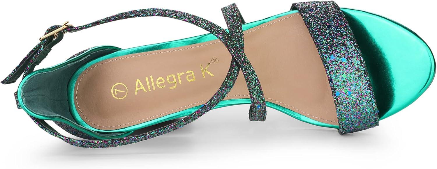 Allegra K Women’s Glitter Crisscross Strap Block Heels Sandals(Green)