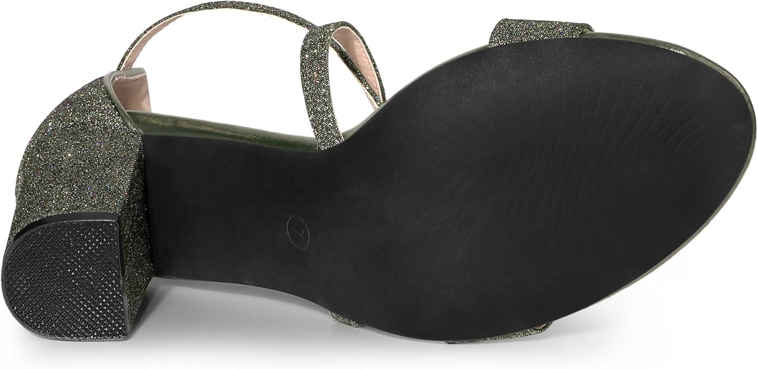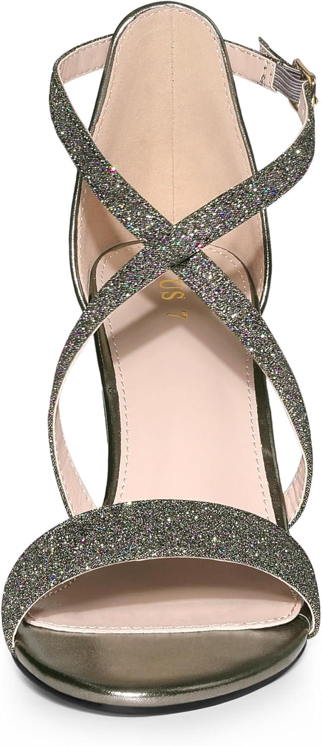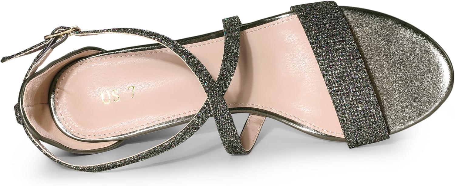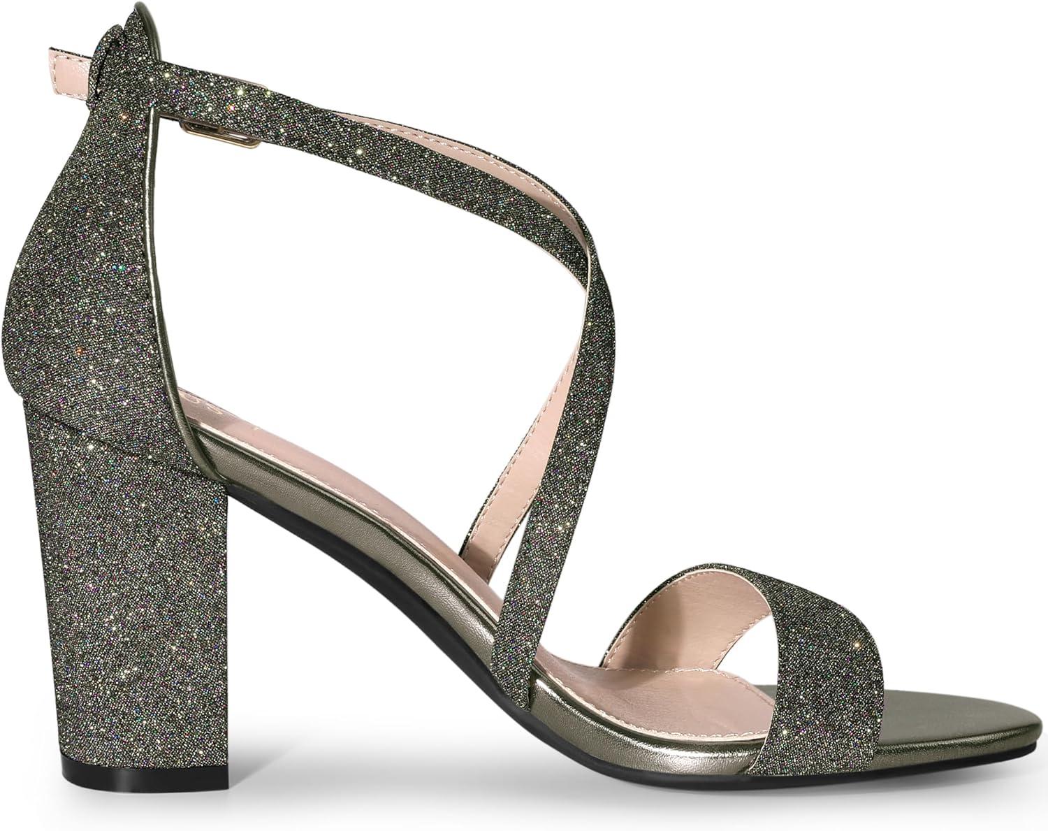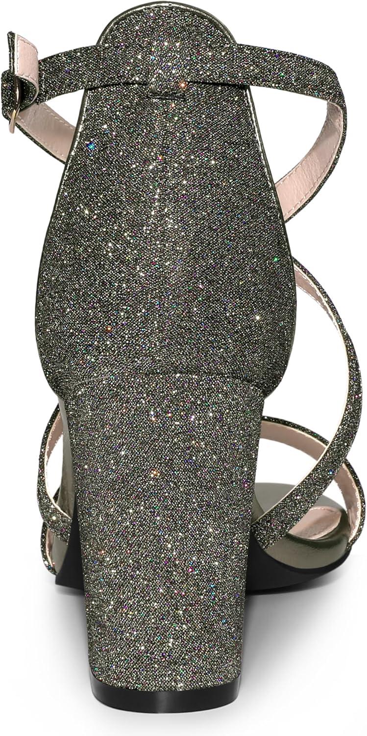 Allegra K Women’s Glitter Crisscross Strap Block Heels Sandals(Pewter)