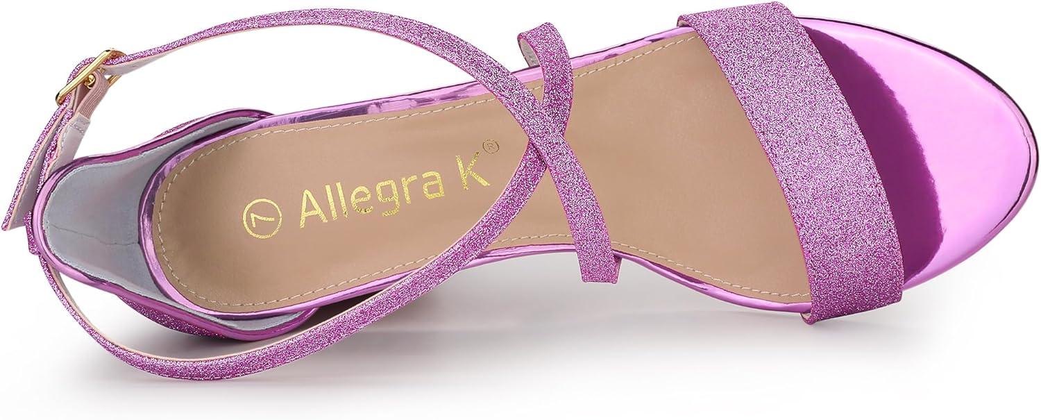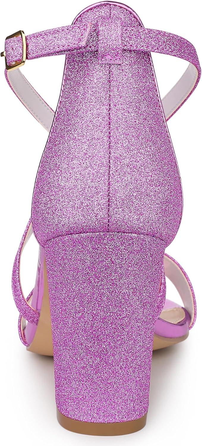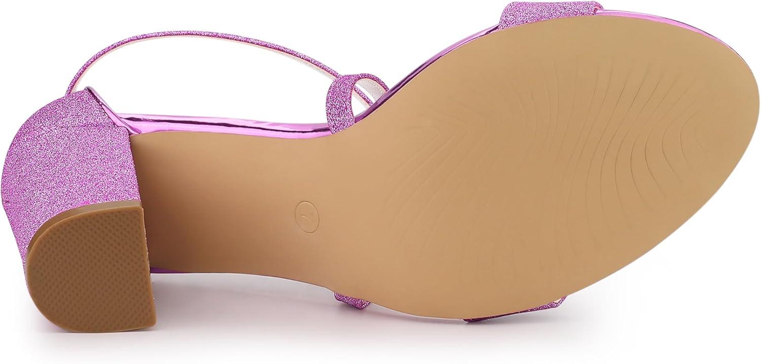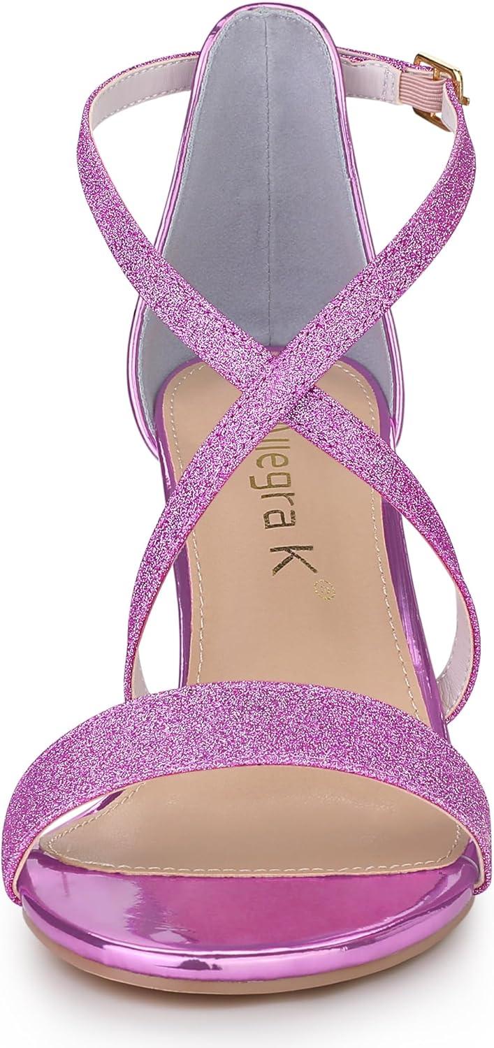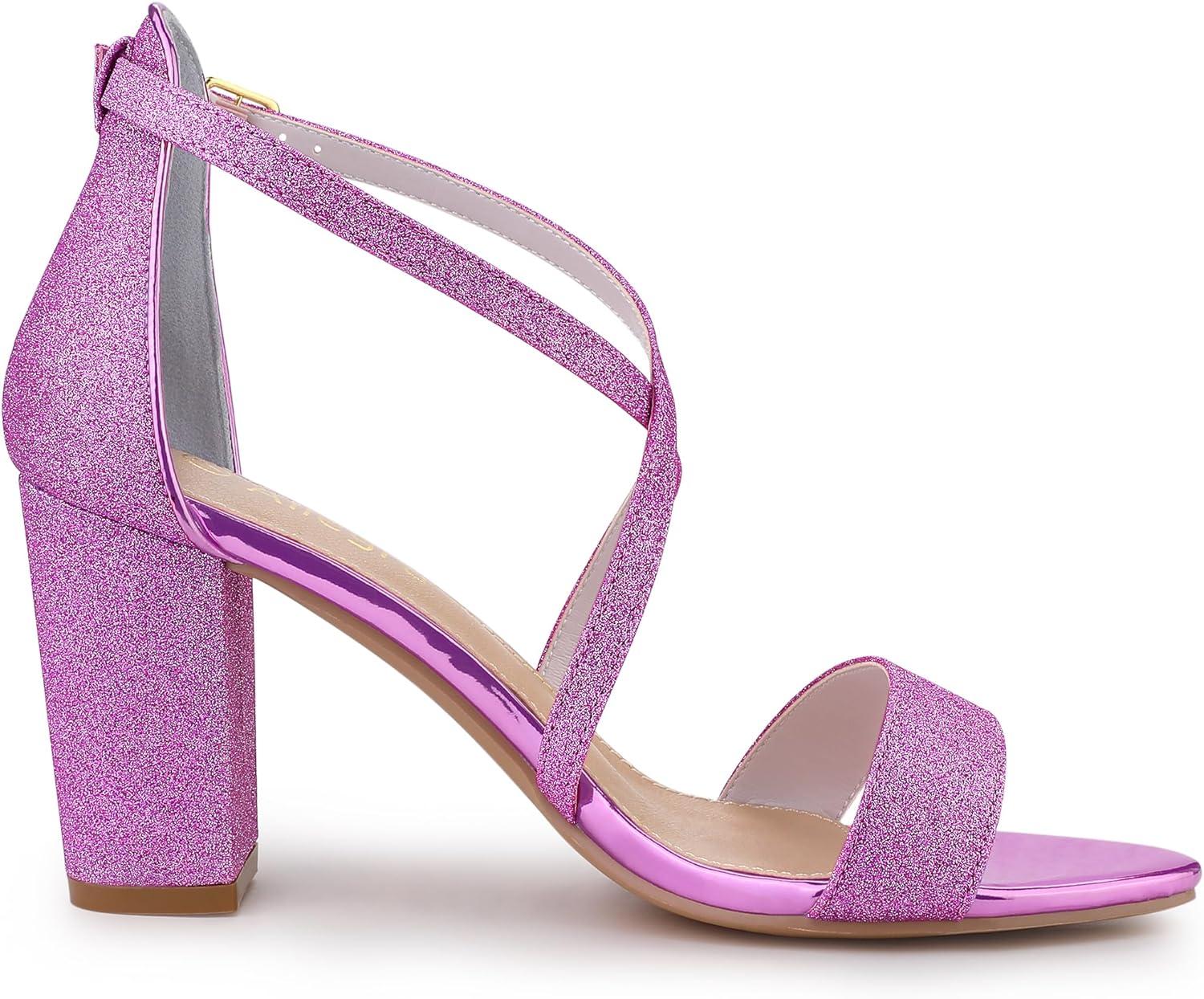 Allegra K Women’s Glitter Crisscross Strap Block Heels Sandals(Purple)