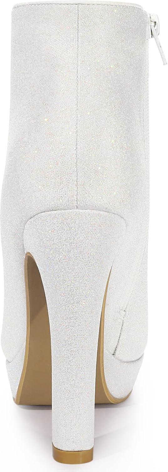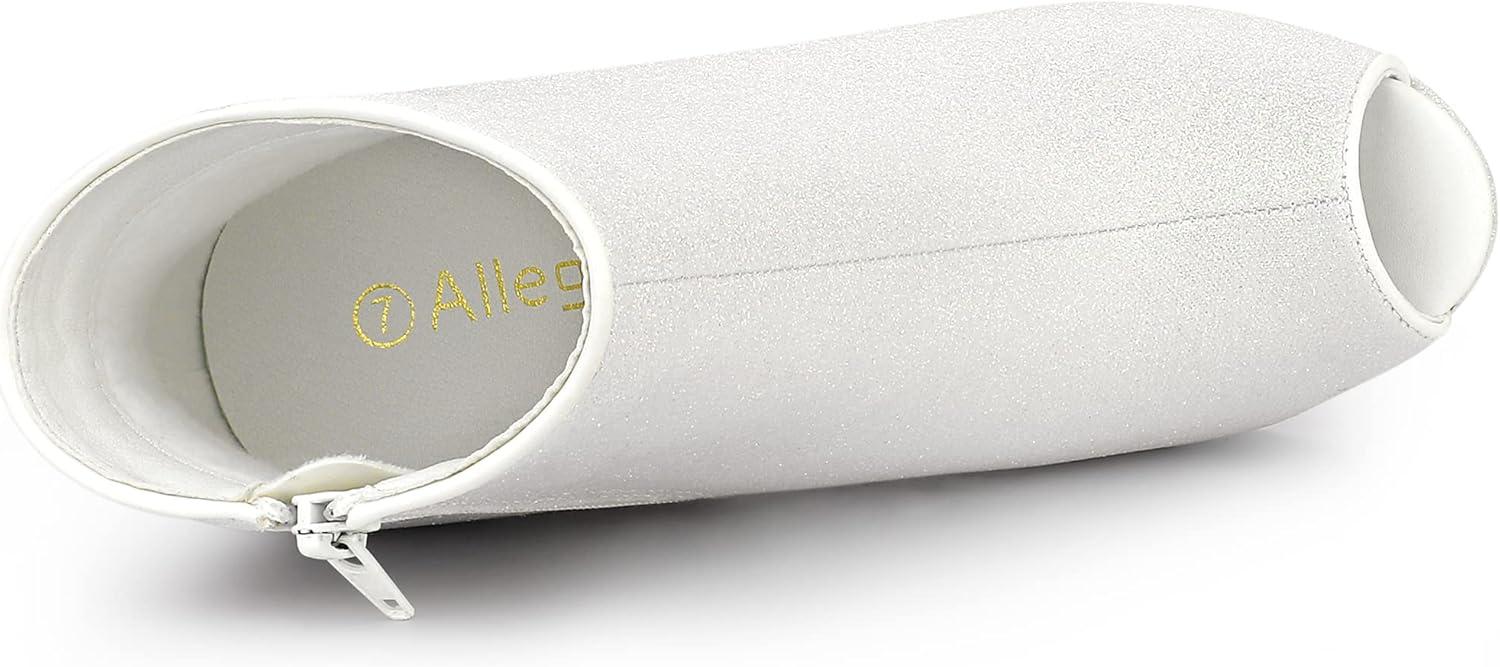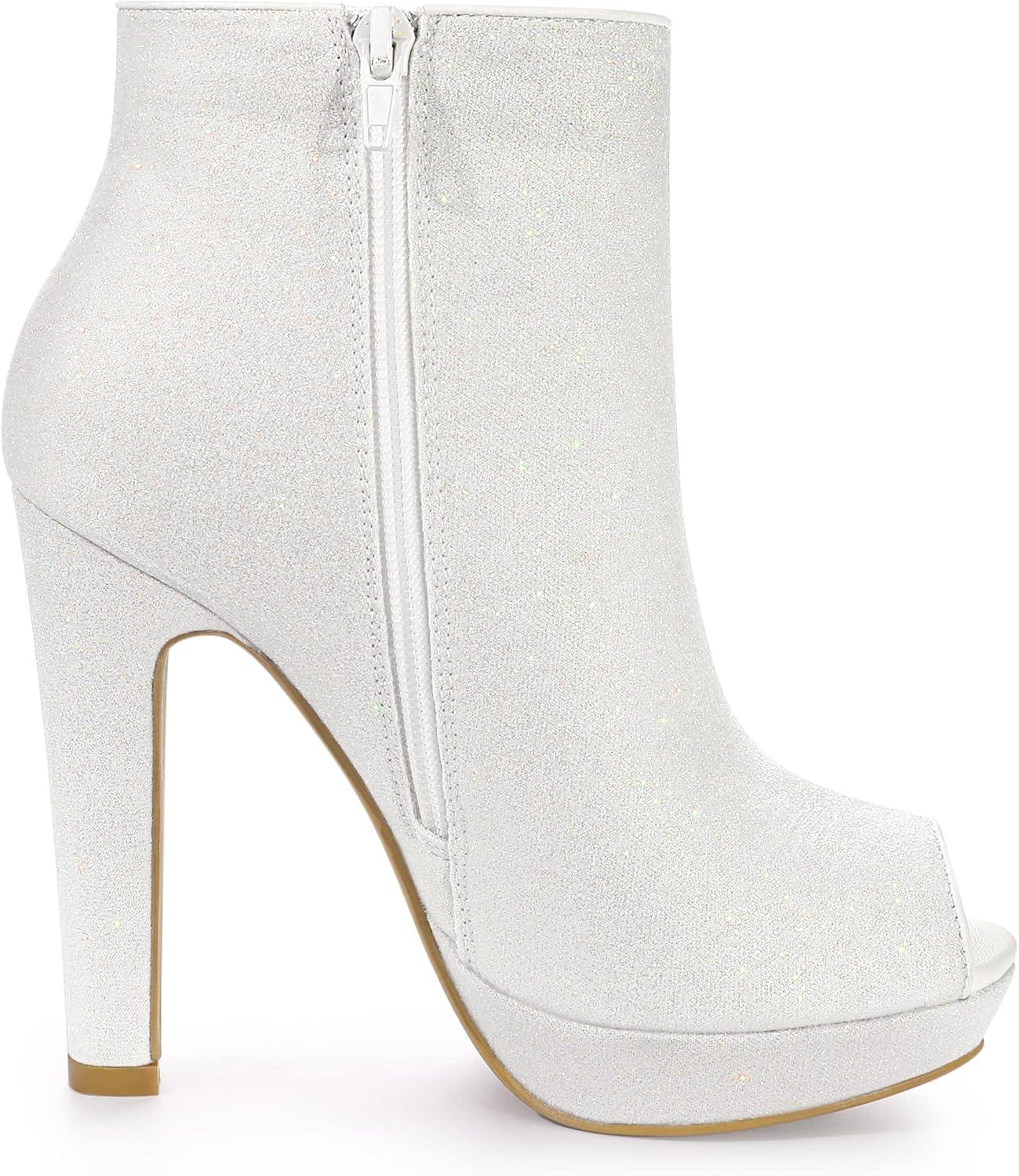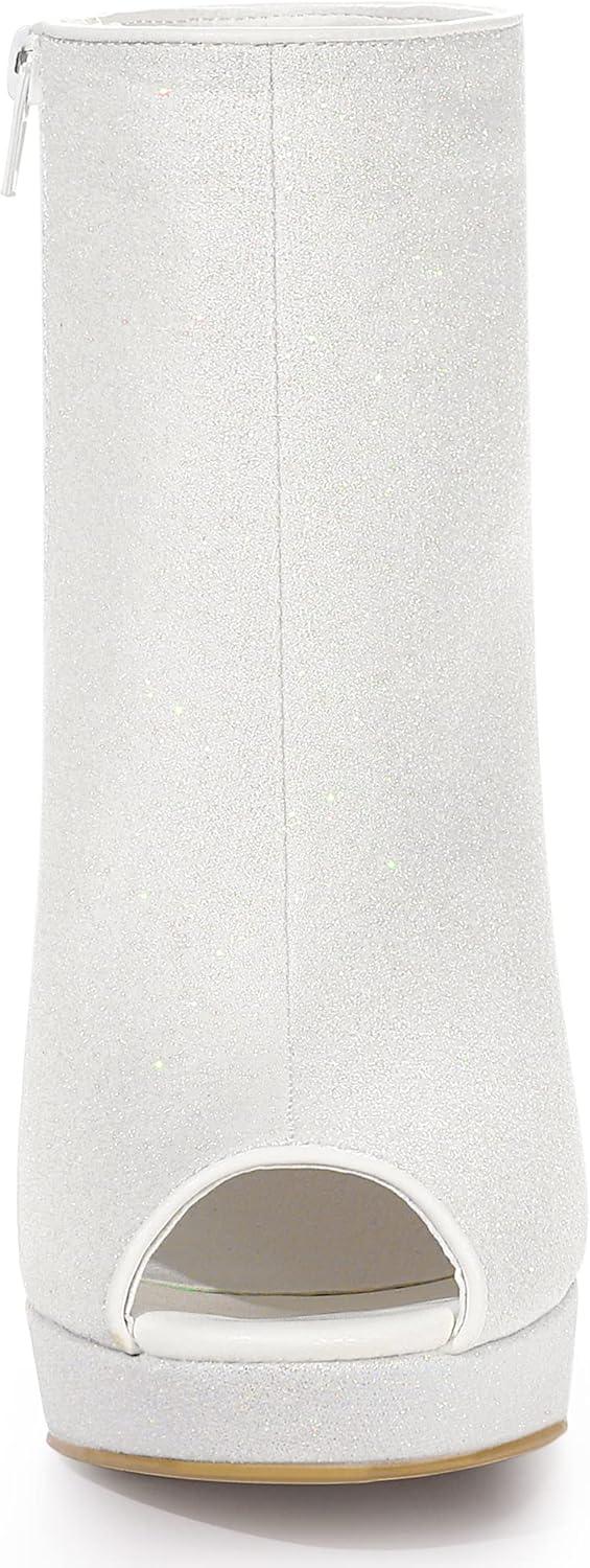 Allegra K Women’s Glitter Platform Chunky Heeled Open Toe Heel Ankle Boots(White)