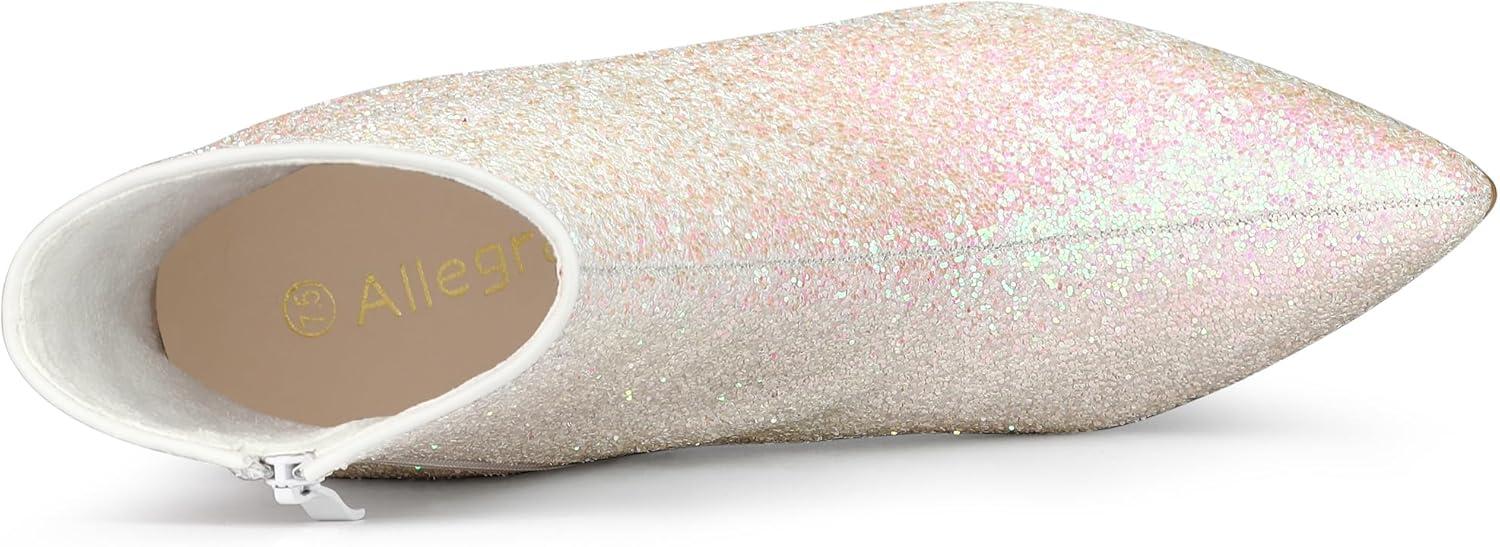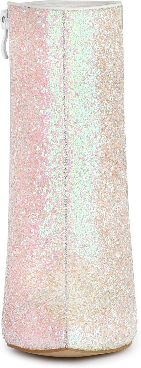 Allegra K Women’s Glitter Pointed Toe Chunky Heel Ankle Boots(Bling White)