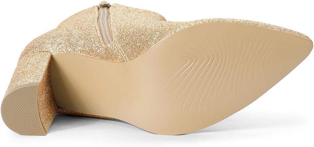 Allegra K Women's Glitter Pointed Toe Chunky Heel Ankle Boots(Gold)