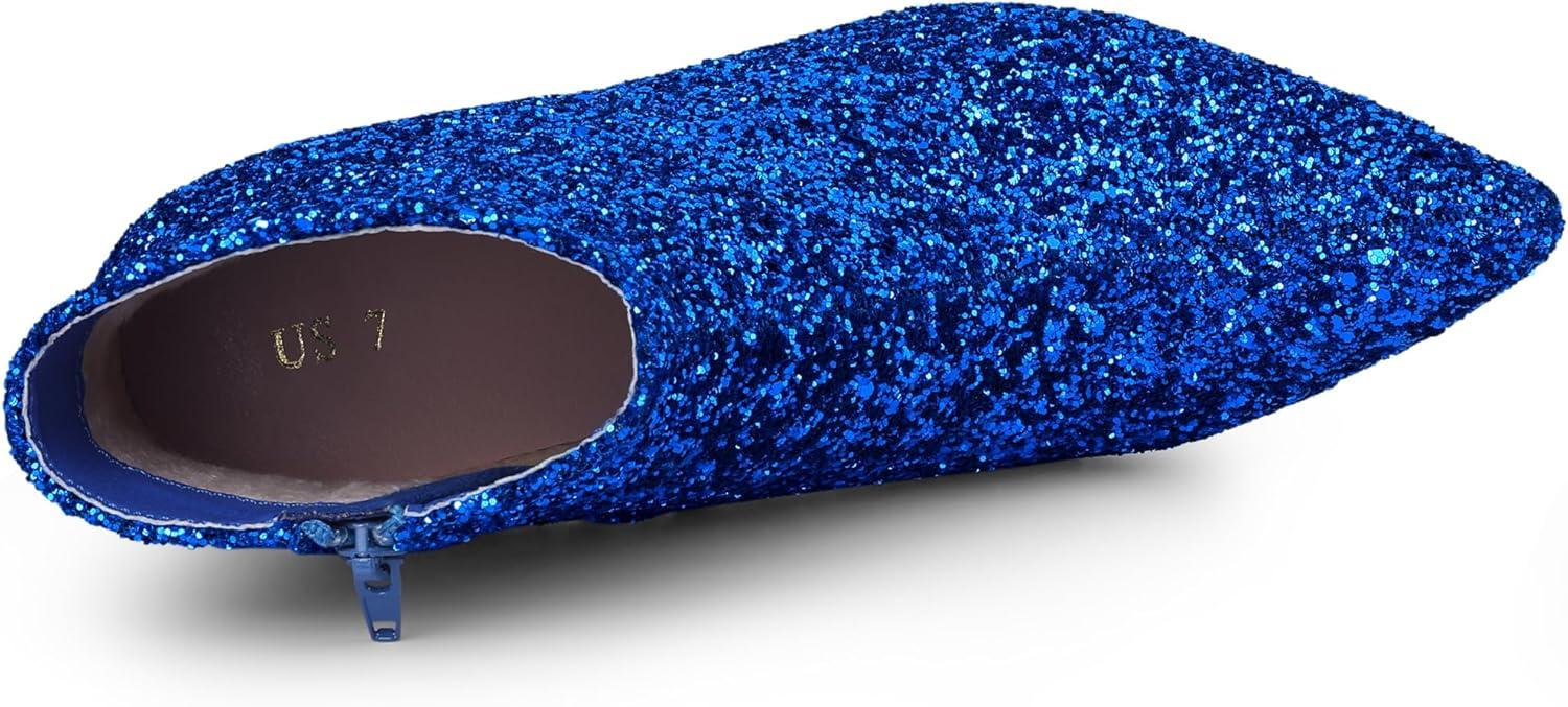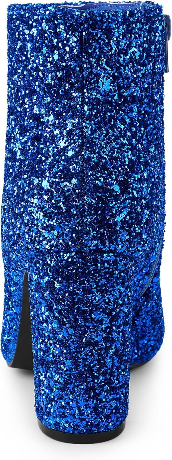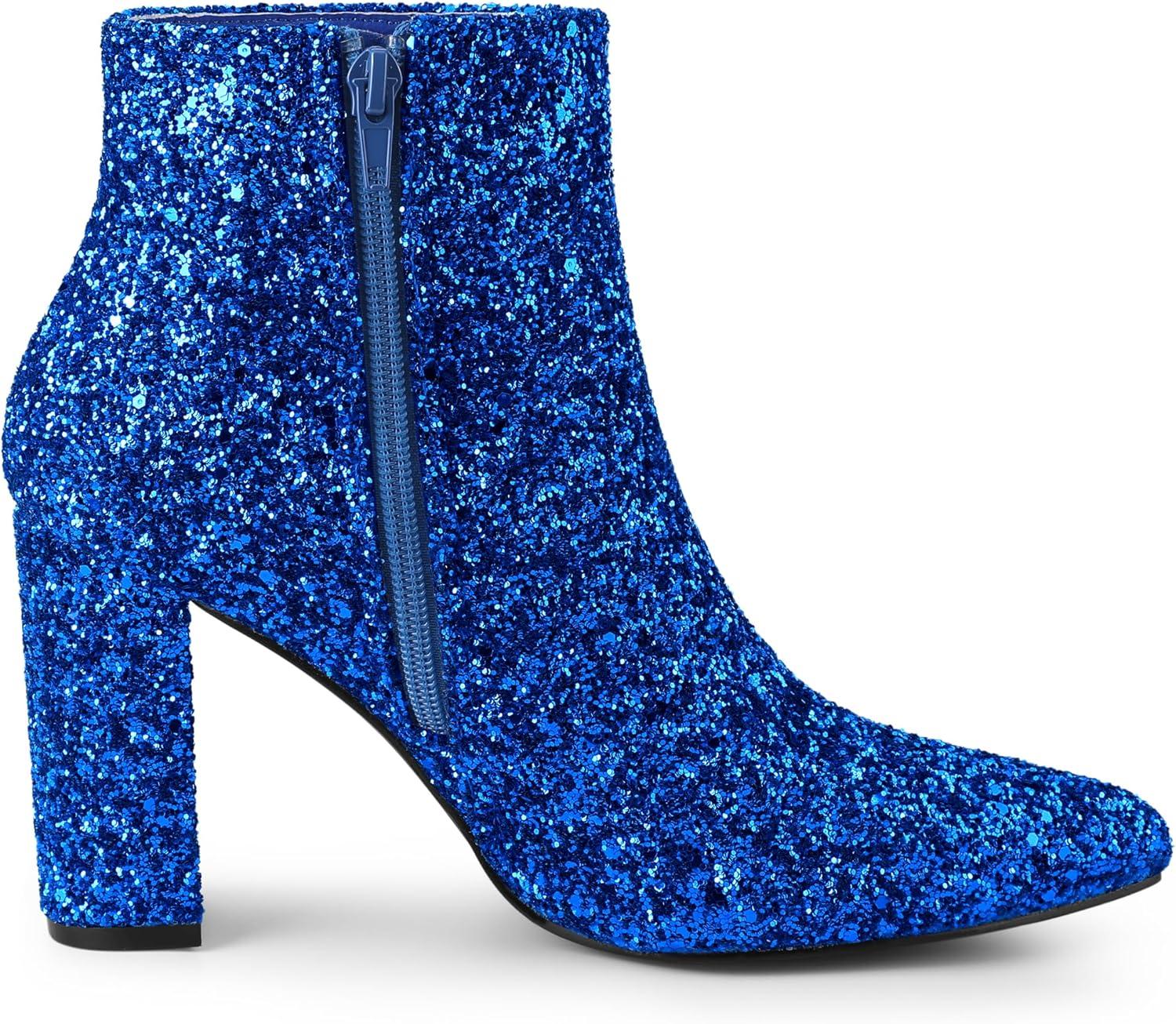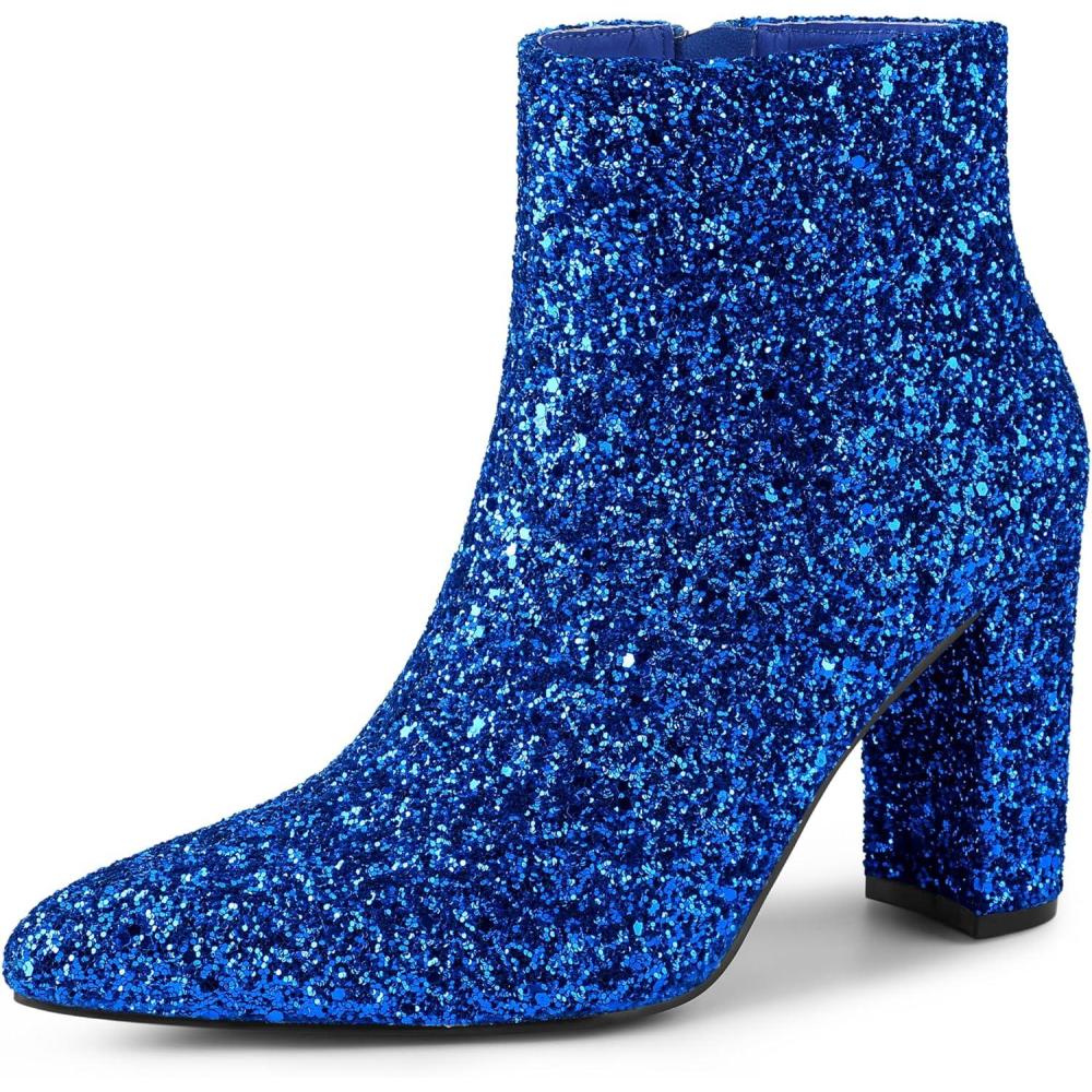 Allegra K Women’s Glitter Pointed Toe Chunky Heel Ankle Boots(Royal Blue)