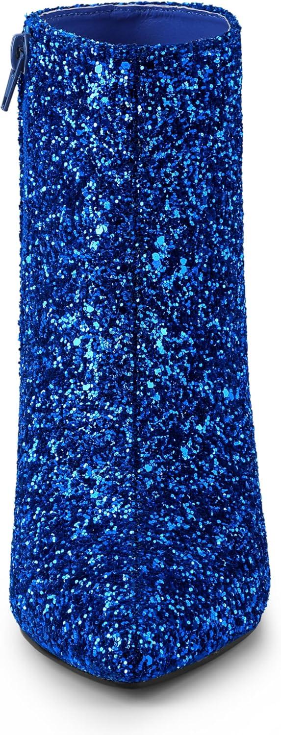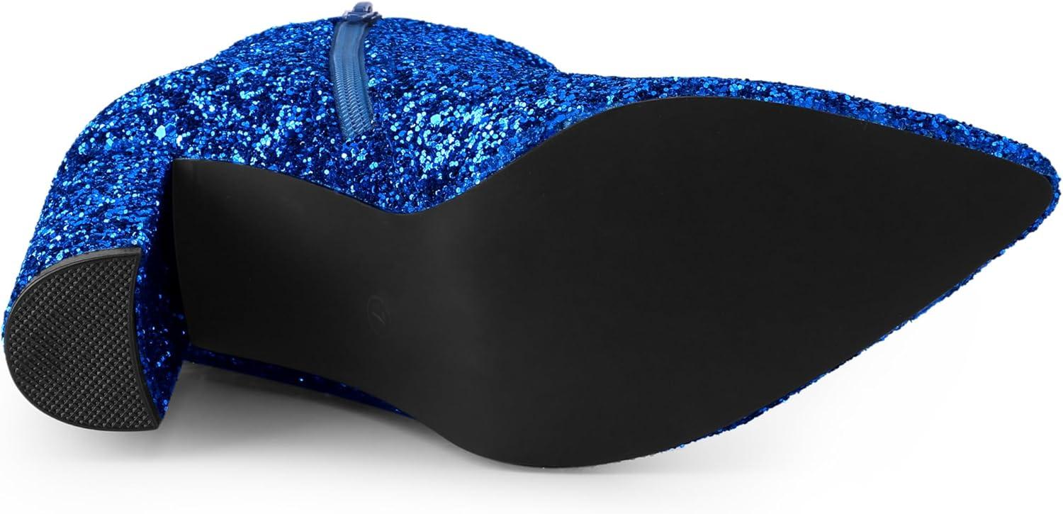 Allegra K Women's Glitter Pointed Toe Chunky Heel Ankle Boots(Royal Blue)
