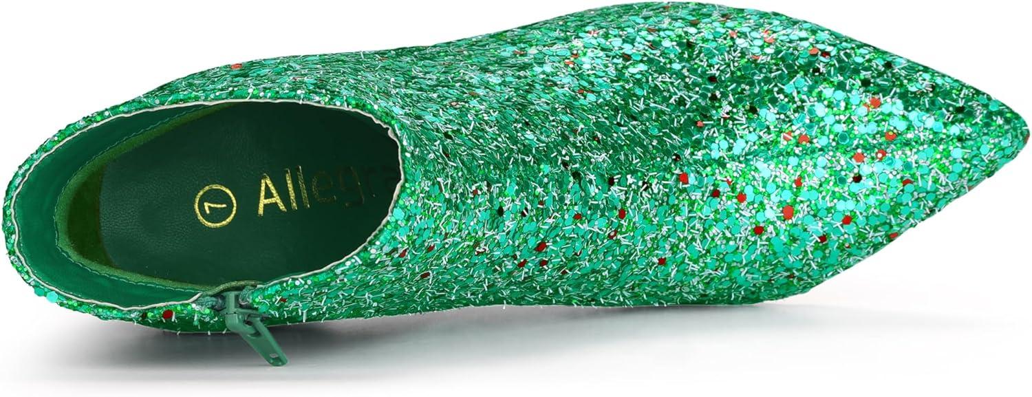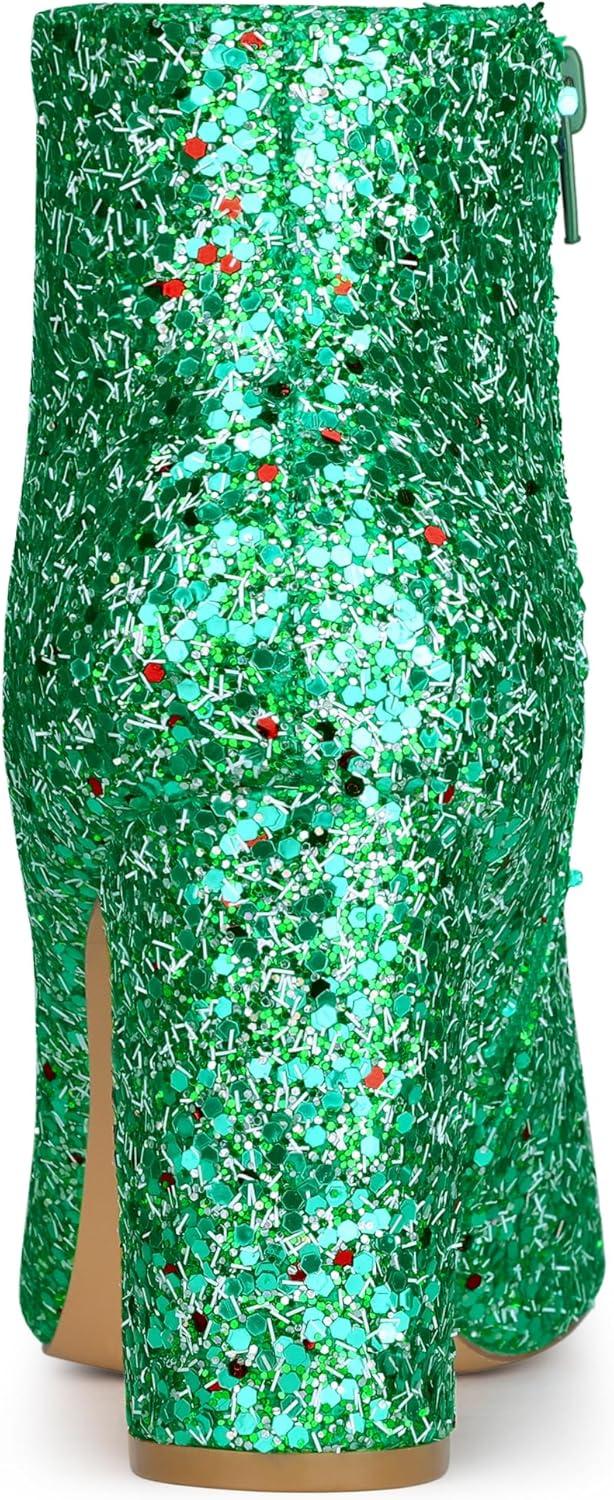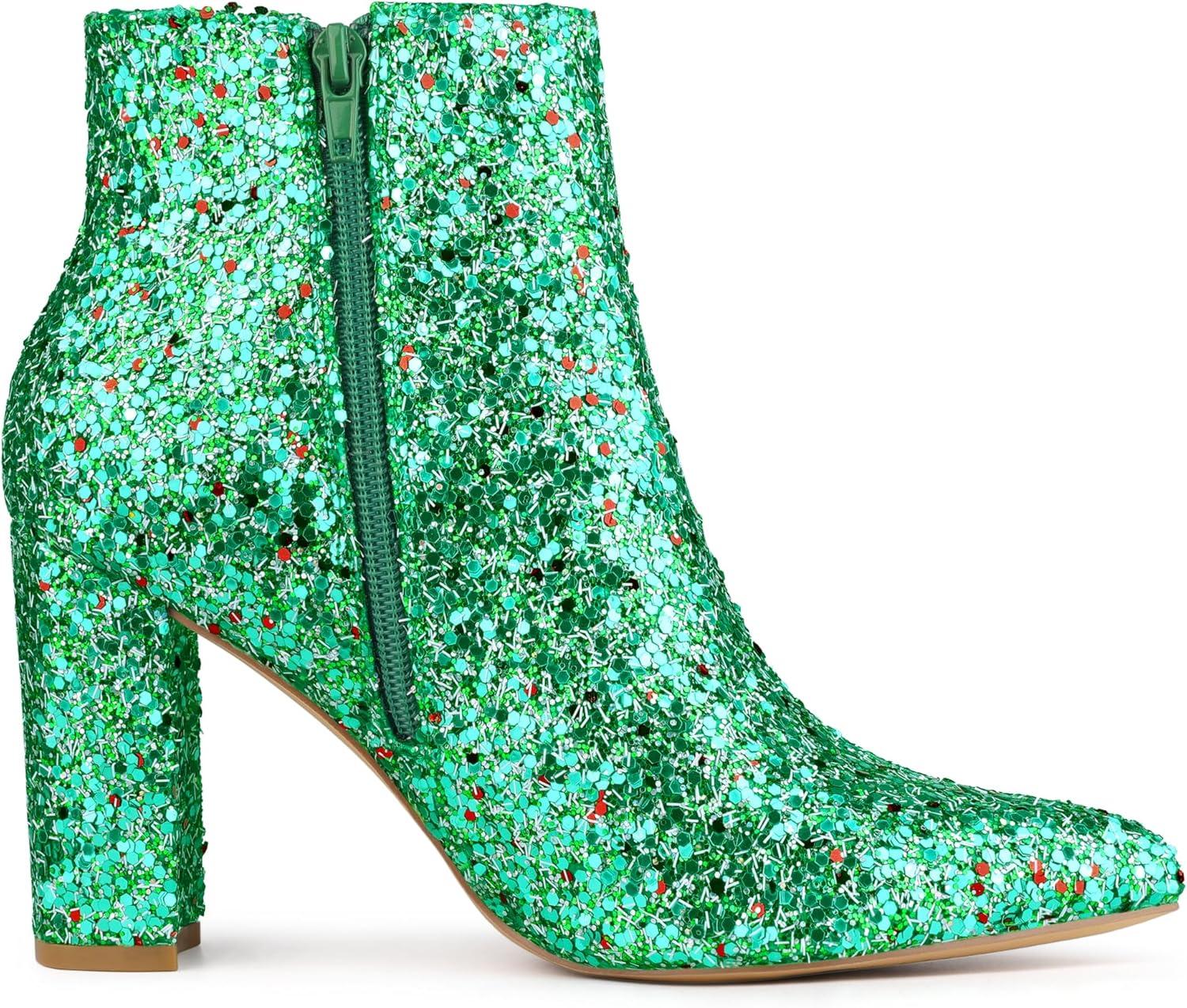Allegra K Women’s Glitter Pointed Toe Chunky Heel Ankle Boots(Shamrock Green)