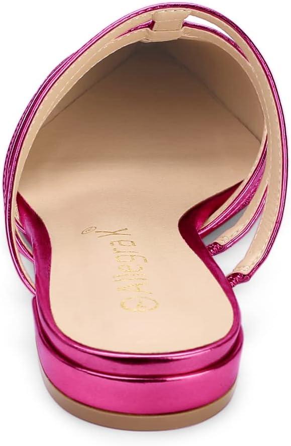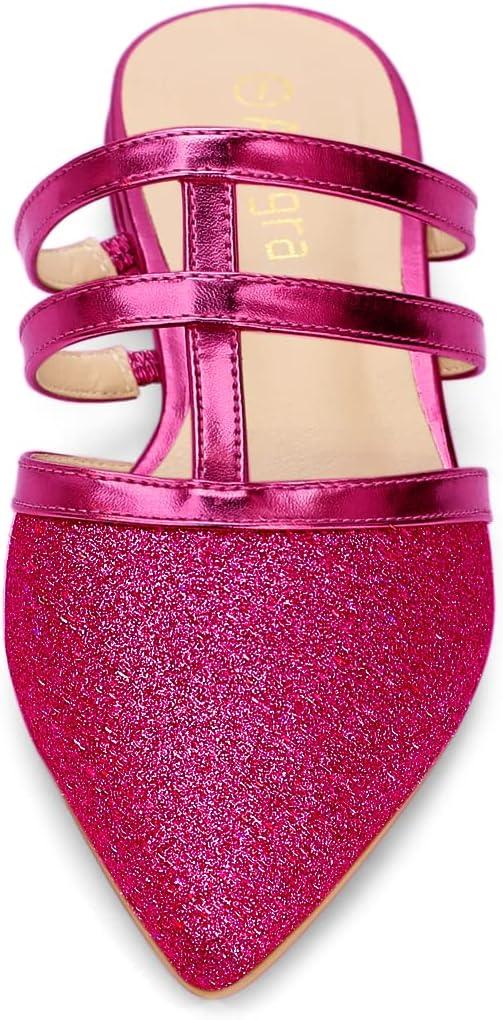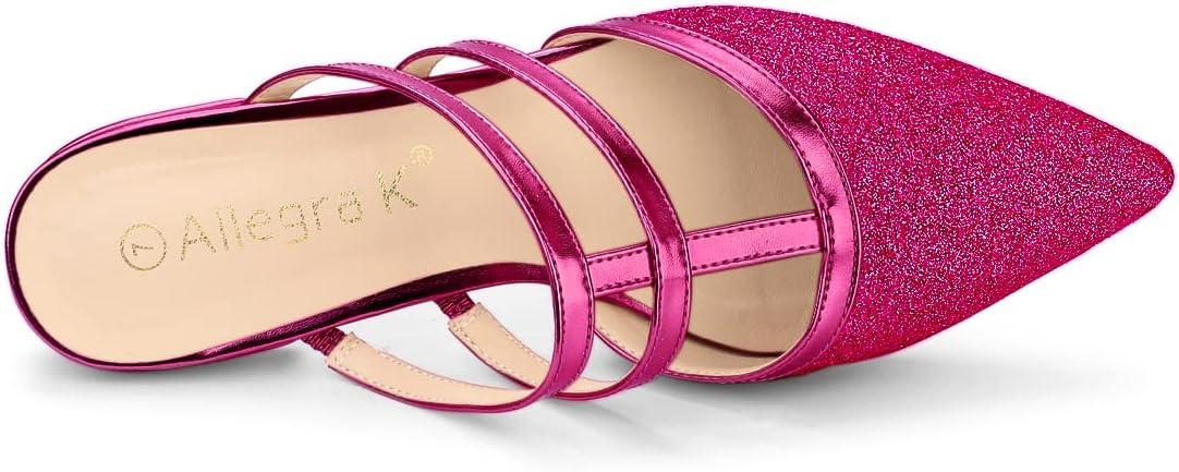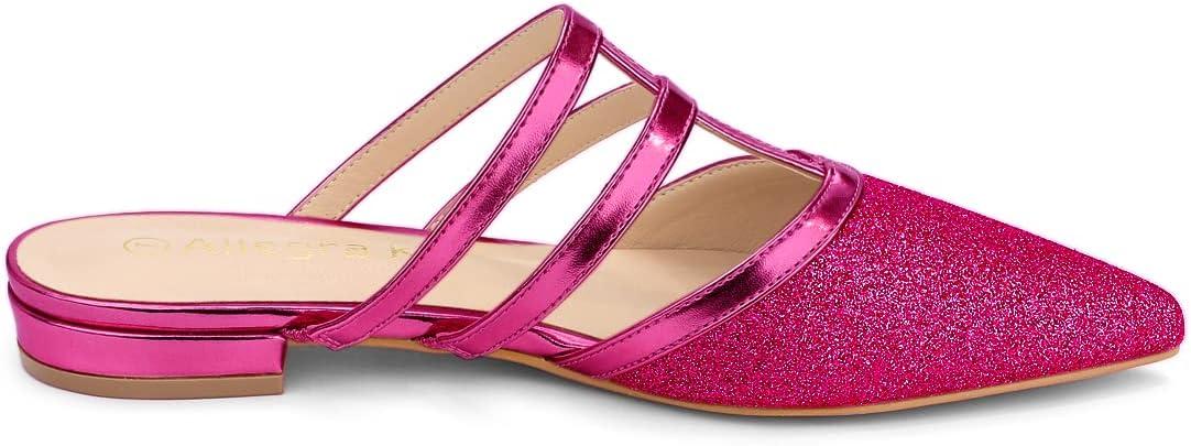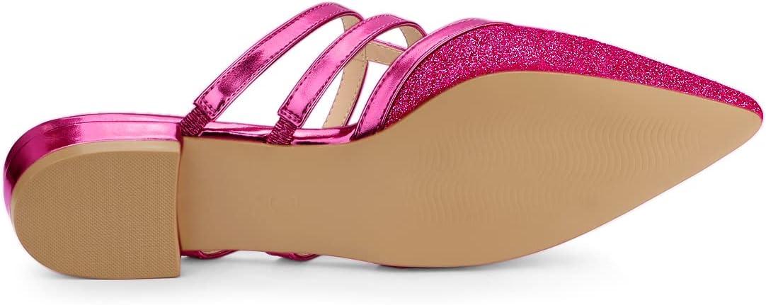 Allegra K Women’s Glitter Pointed Toe Flat Mules(Hot Pink)