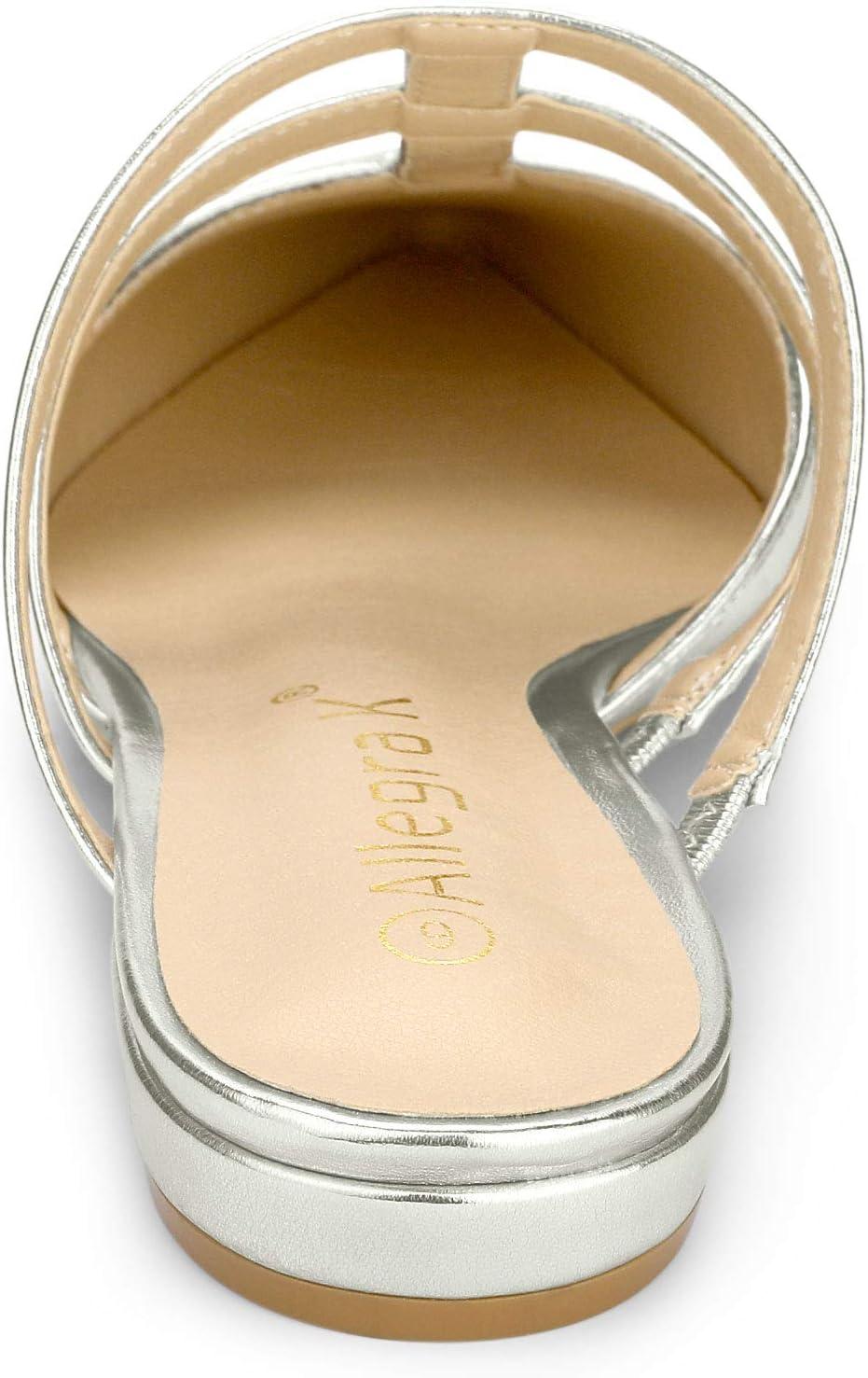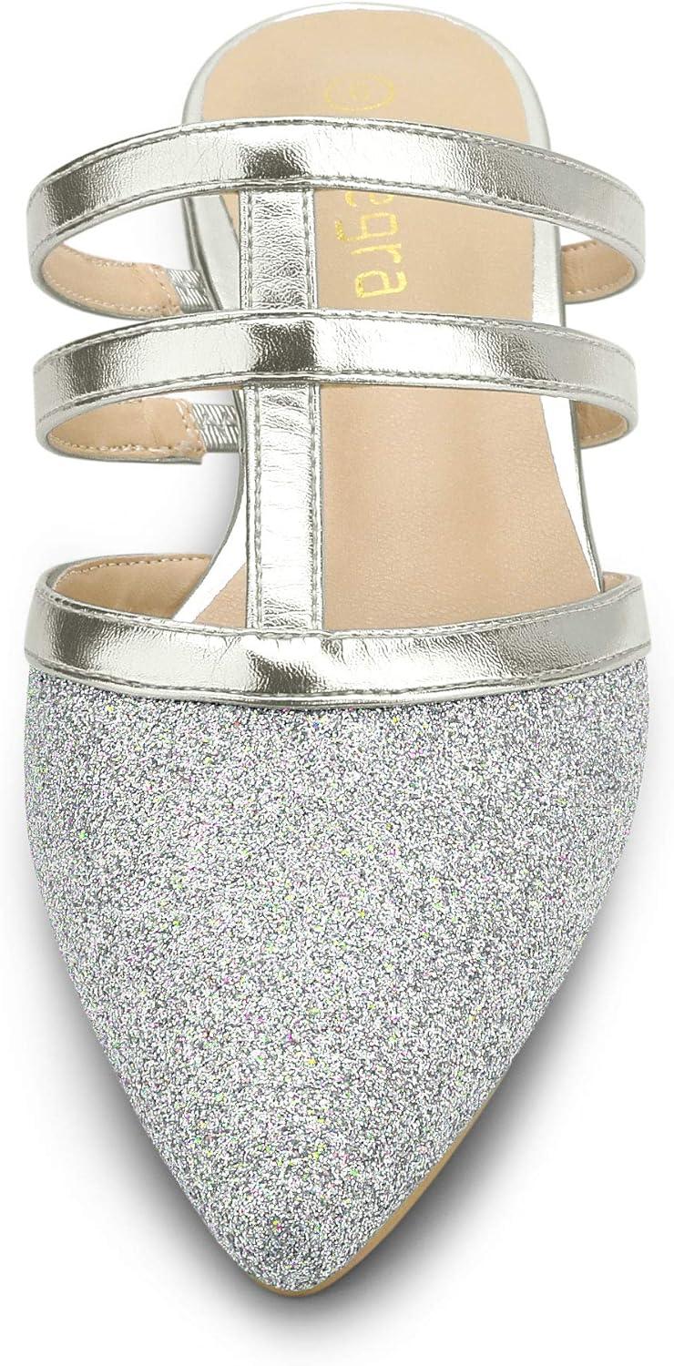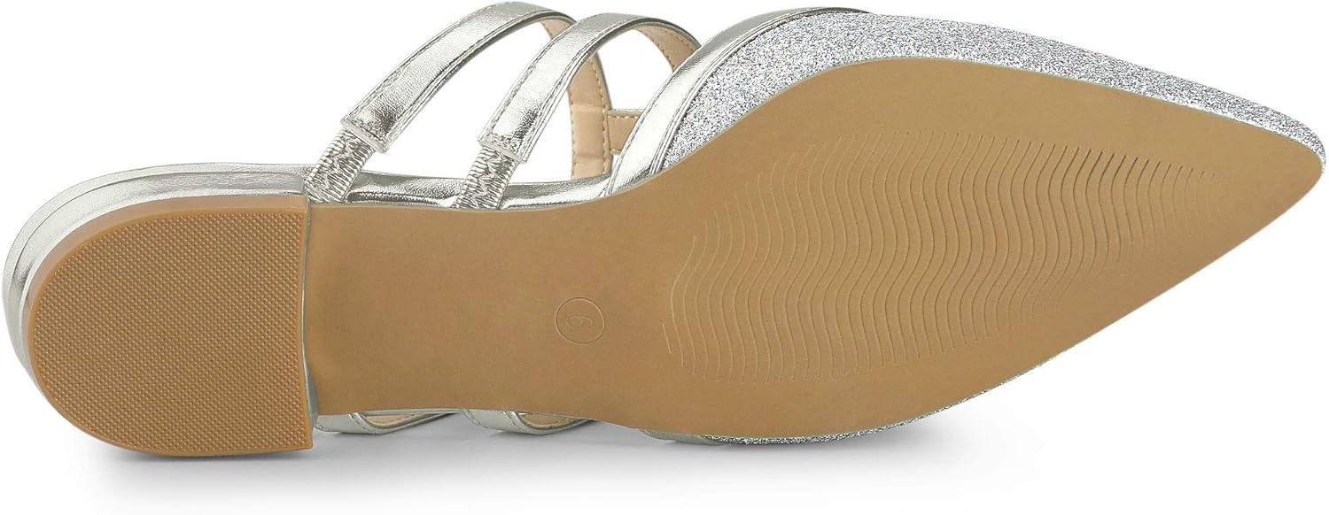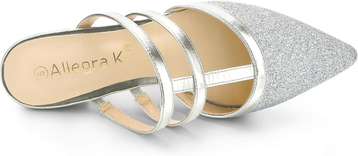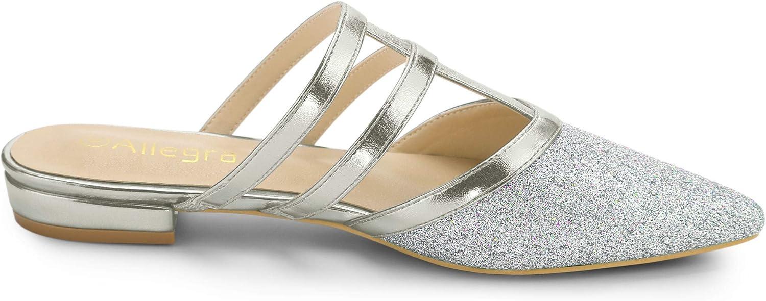 Allegra K Women's Glitter Pointed Toe Flat Mules(Silver)