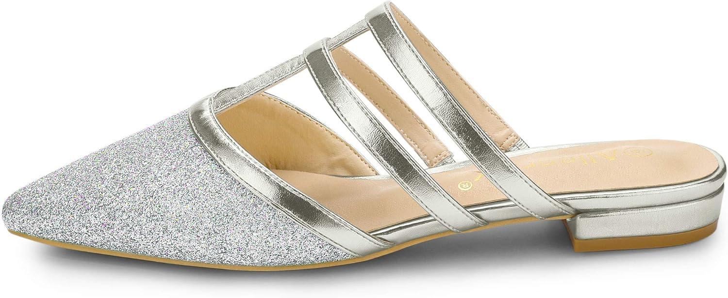 Allegra K Women’s Glitter Pointed Toe Flat Mules(Silver)