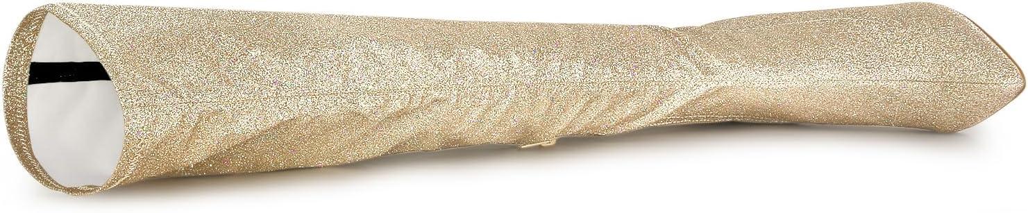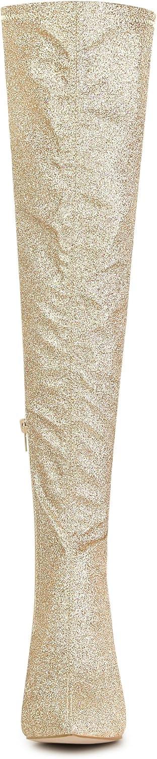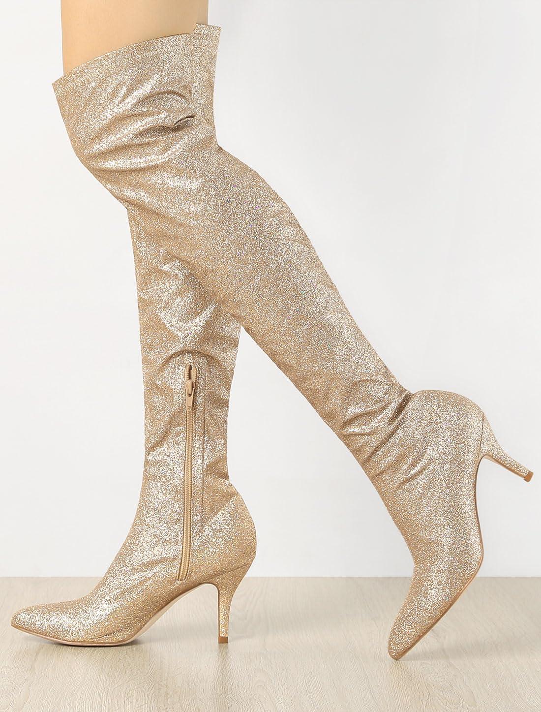 Allegra K Women's Glitter Pointed Toe Stiletto Heel Over the Knee Thigh High Boot(Gold)