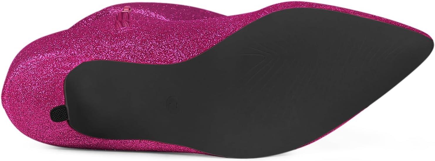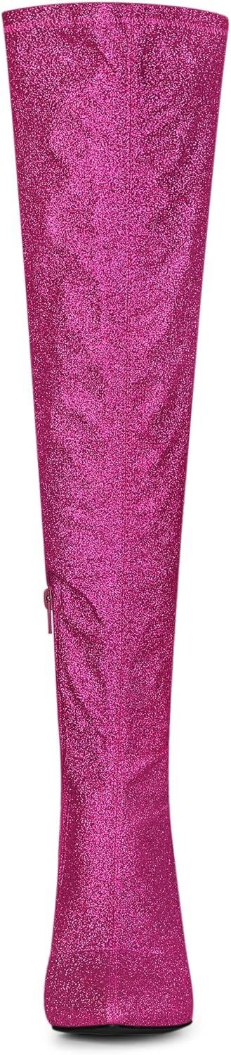Allegra K Women’s Glitter Pointed Toe Stiletto Heel Over the Knee Thigh High Boot(Hot Pink)