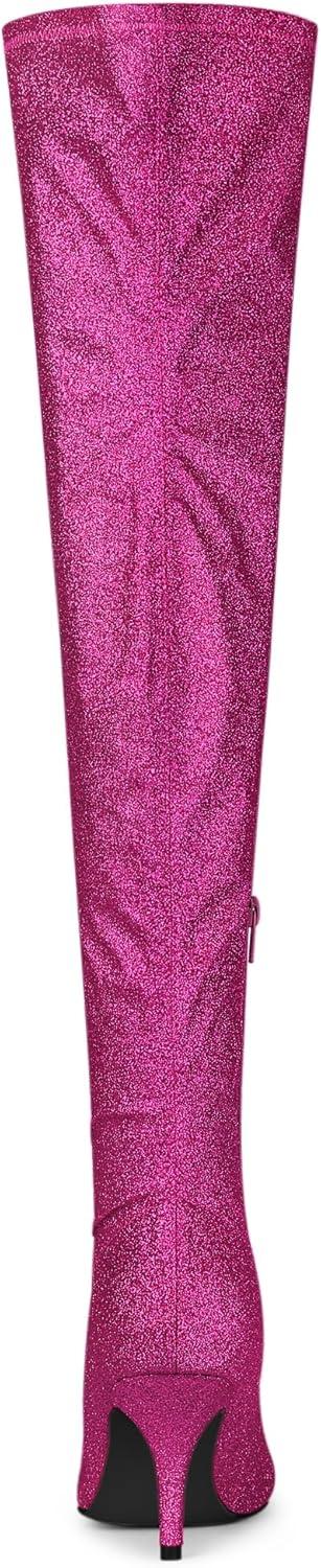 Allegra K Women's Glitter Pointed Toe Stiletto Heel Over the Knee Thigh High Boot(Hot Pink)