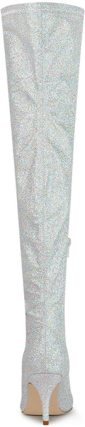 Allegra K Women's Glitter Pointed Toe Stiletto Heel Over the Knee Thigh High Boot(Silver)