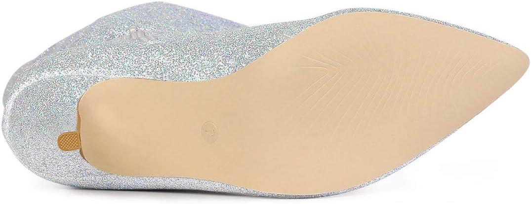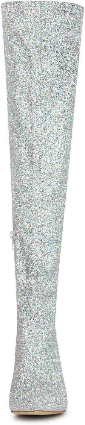 Allegra K Women’s Glitter Pointed Toe Stiletto Heel Over the Knee Thigh High Boot(Silver)