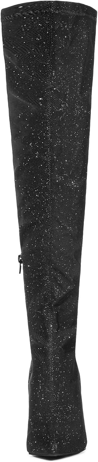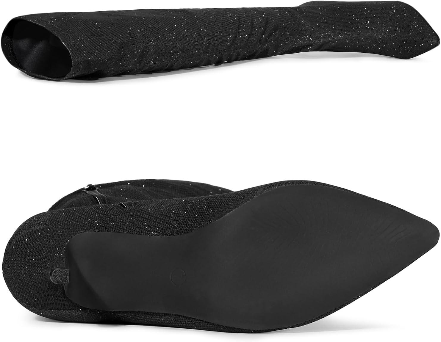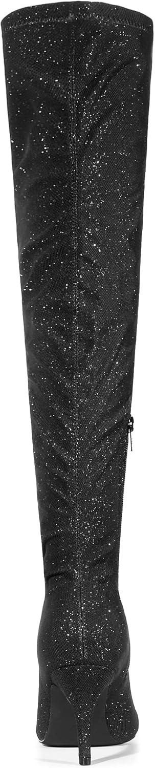 Allegra K Women’s Glitter Pointed Toe Stiletto Heels Over the Knee High Boots(Black)