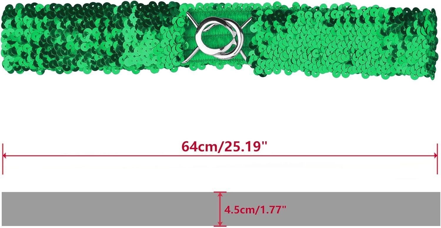 Allegra K Womens Glitter Skinny Stretchy Waist Belts Sequins Decor Elastic Belts for Dresses(Green)