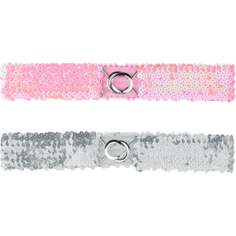 imageAllegra K Womens Glitter Skinny Stretchy Waist Belts Sequins Decor Elastic Belts for DressesPink