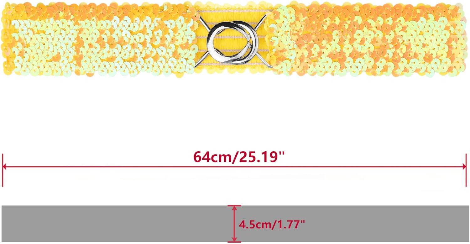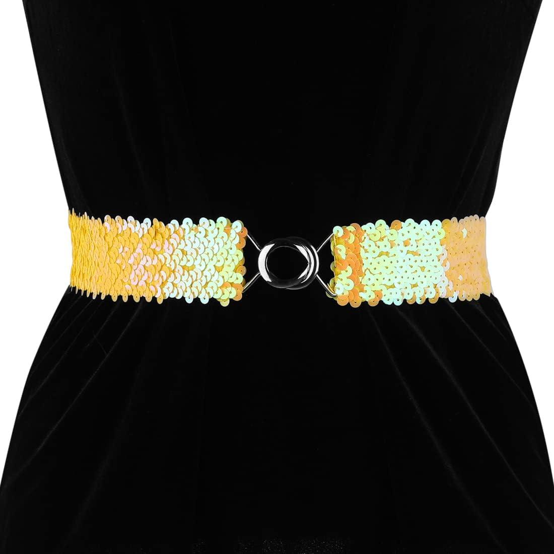 Allegra K Womens Glitter Skinny Stretchy Waist Belts Sequins Decor Elastic Belts for Dresses(Yellow)