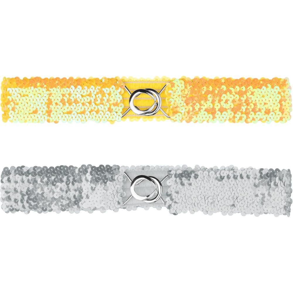 imageAllegra K Womens Glitter Skinny Stretchy Waist Belts Sequins Decor Elastic Belts for DressesYellow