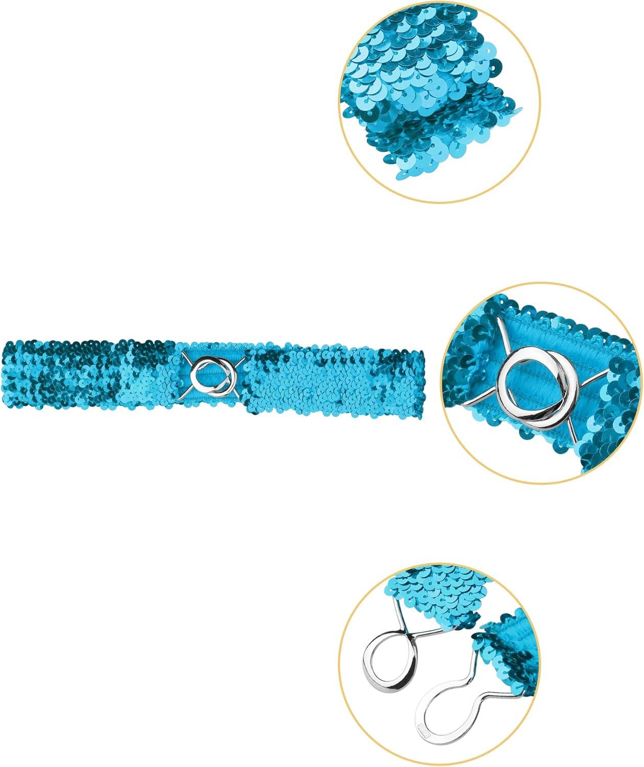 imageAllegra K Womens Glitter Skinny Stretchy Waist Belts Sequins Decor Slim Elastic Belts 2PCSLight Blue