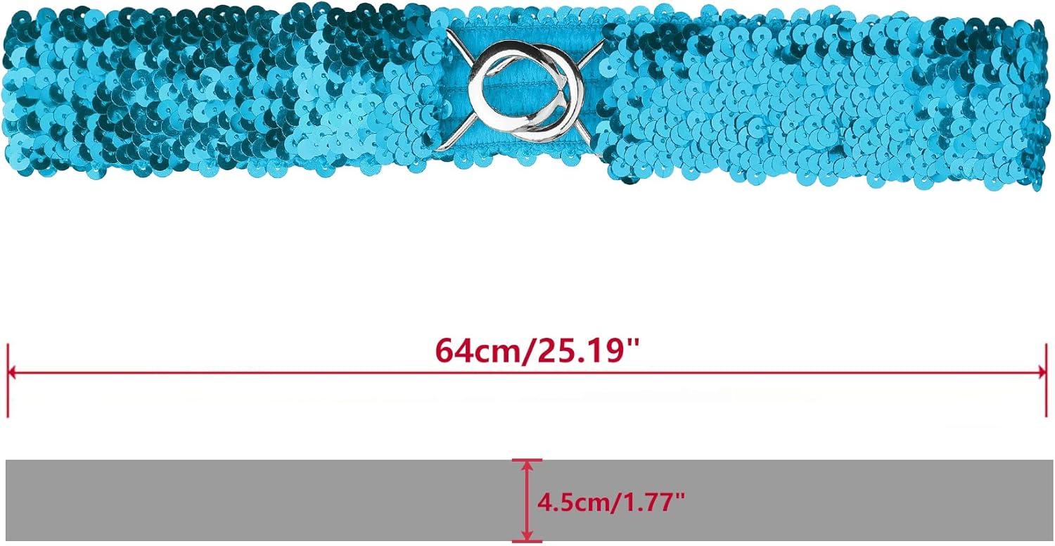 Allegra K Womens Glitter Skinny Stretchy Waist Belts Sequins Decor Slim Elastic Belts 2PCS(Light Blue)