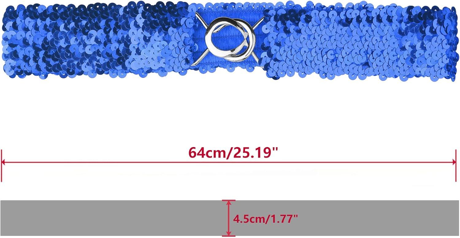 Allegra K Womens Glitter Skinny Stretchy Waist Belts Sequins Decor Slim Elastic Belts 2PCS(Royal Blue)