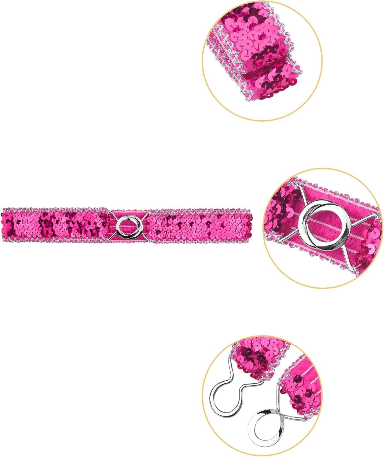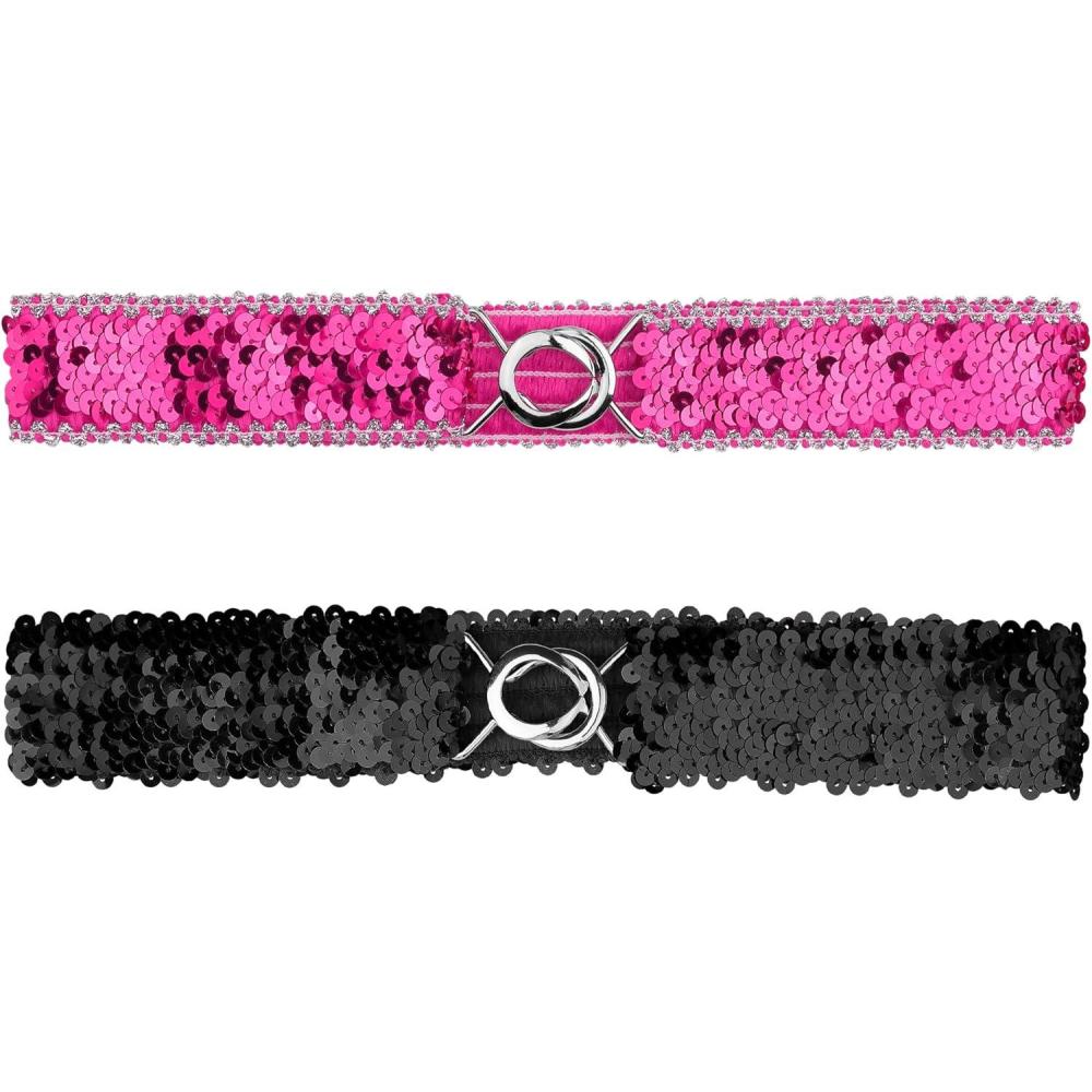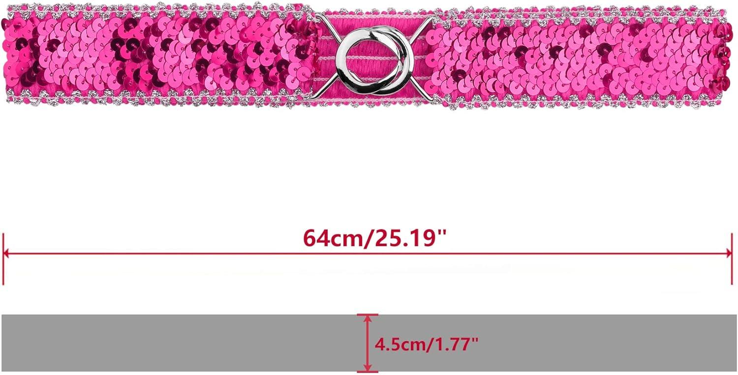 Allegra K Womens Glitter Skinny Stretchy Waist Belts Sequins Decor Slim Elastic Belts 2PCS(Silver Side Rose Red)