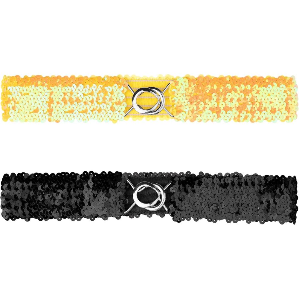 imageAllegra K Womens Glitter Skinny Stretchy Waist Belts Sequins Decor Slim Elastic Belts 2PCSYellow