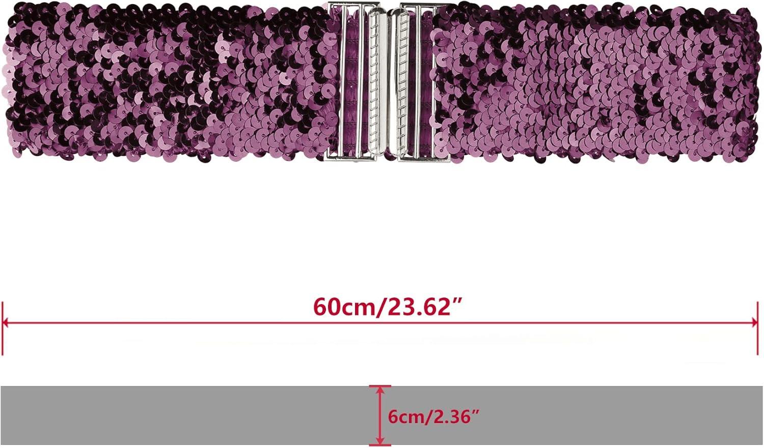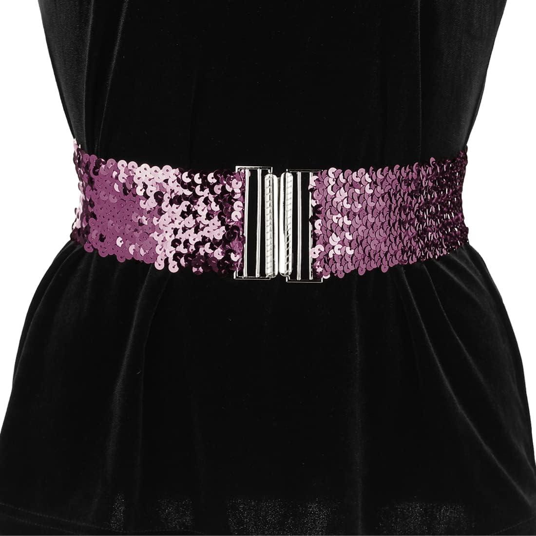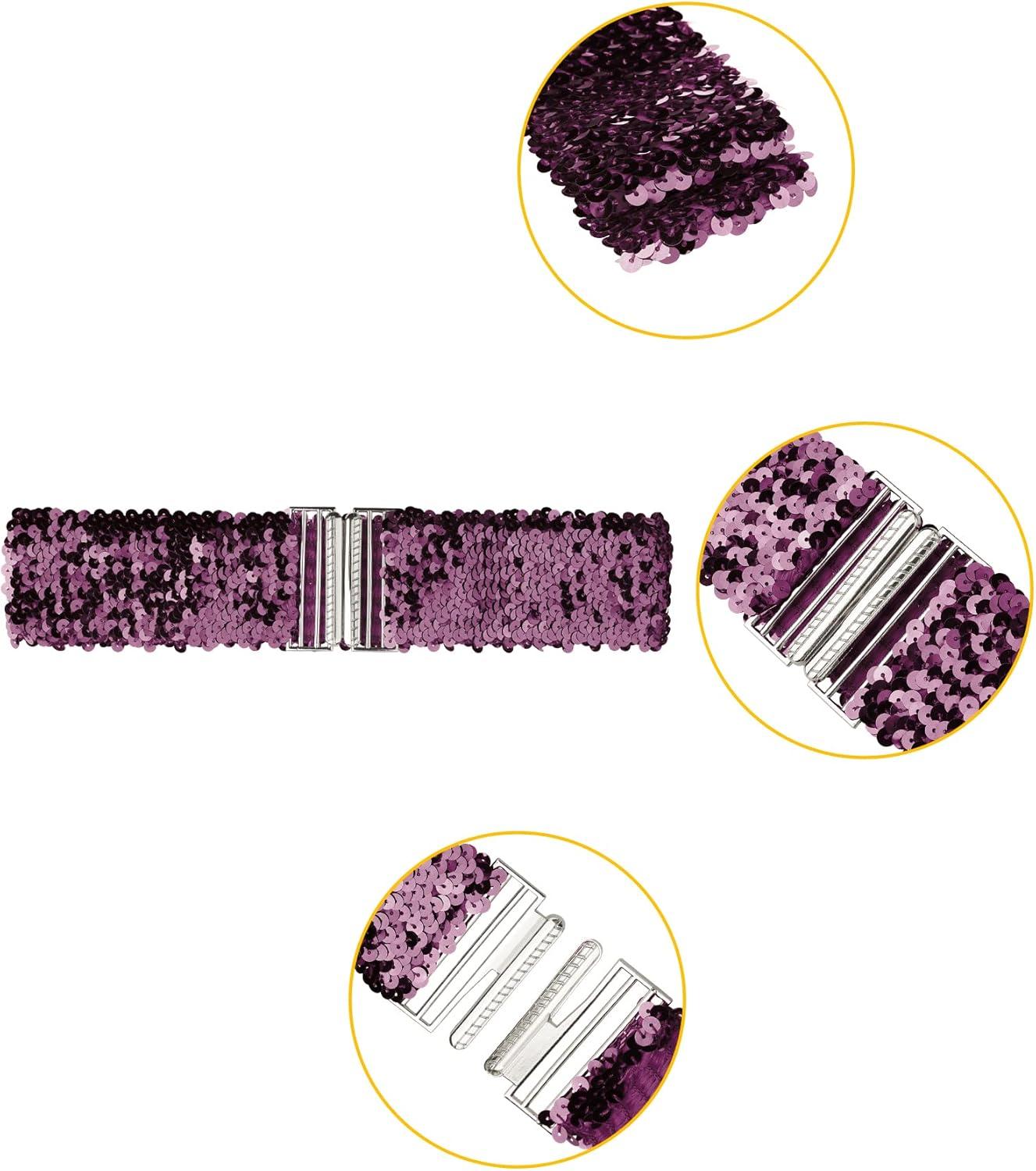 Allegra K Womens Glitter Stretchy Waist Belts Interlock Buckles Sequins Decor Wide Elastic Belts 2PCS(Dark Purple)