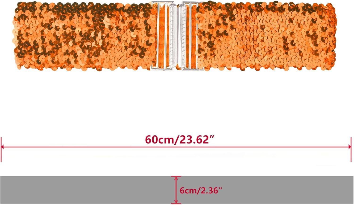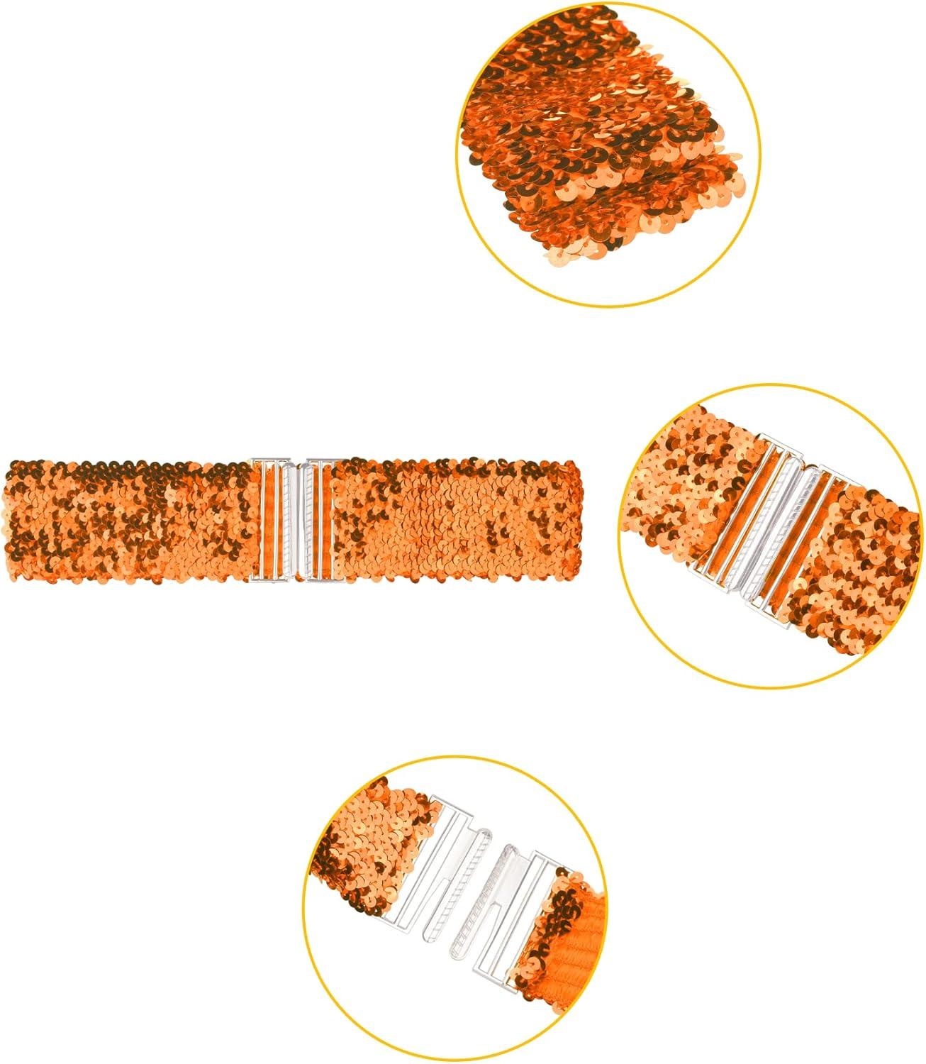 Allegra K Womens Glitter Stretchy Waist Belts Interlock Buckles Sequins Decor Wide Elastic Belts 2PCS(Orange)