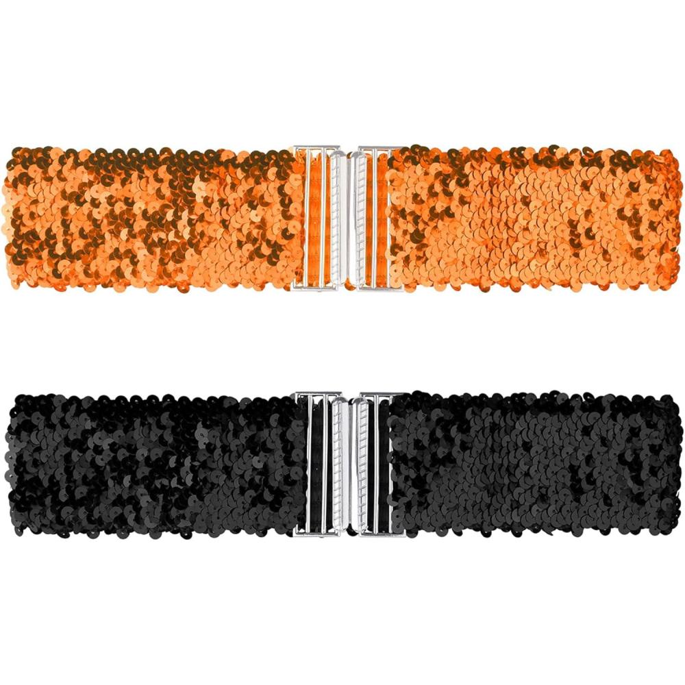 imageAllegra K Womens Glitter Stretchy Waist Belts Interlock Buckles Sequins Decor Wide Elastic Belts 2PCSOrange