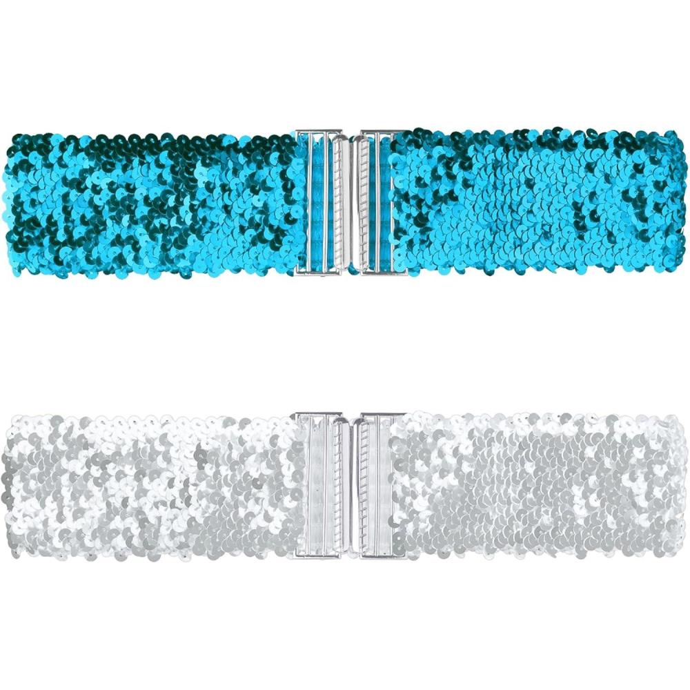 imageAllegra K Womens Glitter Wide Waist Belts Interlock Buckles Sequins Decor Stretchy Belts 2PCSBlue