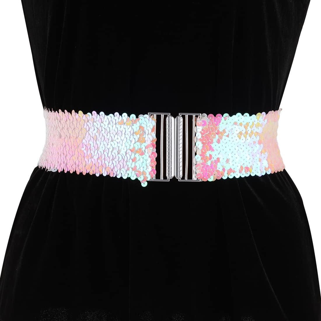 imageAllegra K Womens Glitter Wide Waist Belts Interlock Buckles Sequins Decor Stretchy Belts 2PCSCarnation