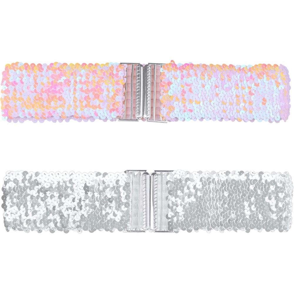 imageAllegra K Womens Glitter Wide Waist Belts Interlock Buckles Sequins Decor Stretchy Belts 2PCSBlue