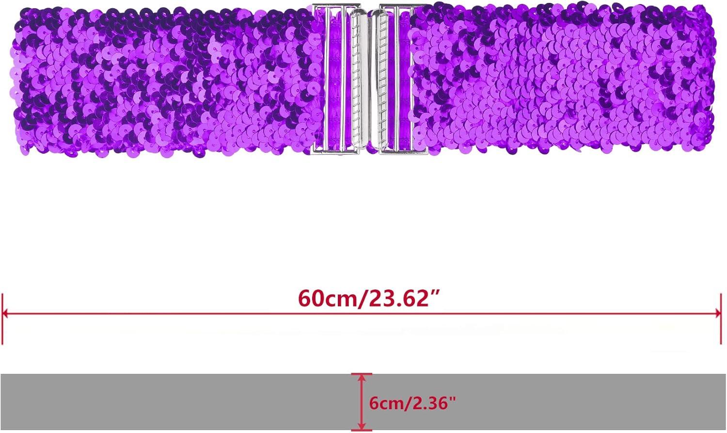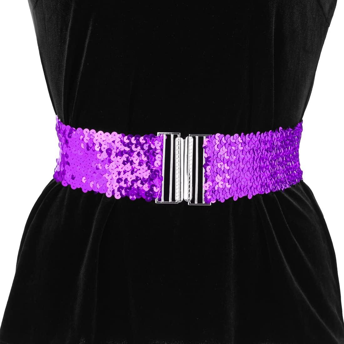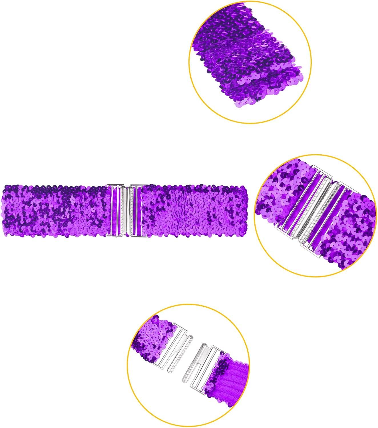 Allegra K Womens Glitter Wide Waist Belts Interlock Buckles Sequins Decor Stretchy Belts 2PCS(Light Purple)